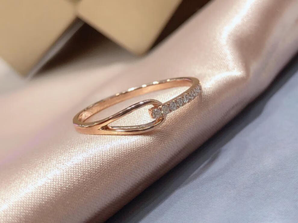 DL 1998 Fat Donglai same style 18k gold ring 18K gold women's Au750 rose gold diamond row ring Dafu tail ring 18K rose gold diamond ring No. 9