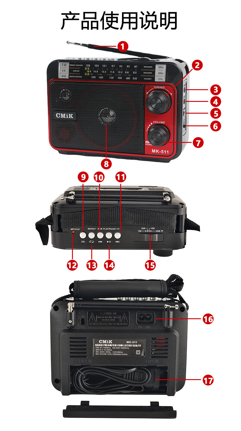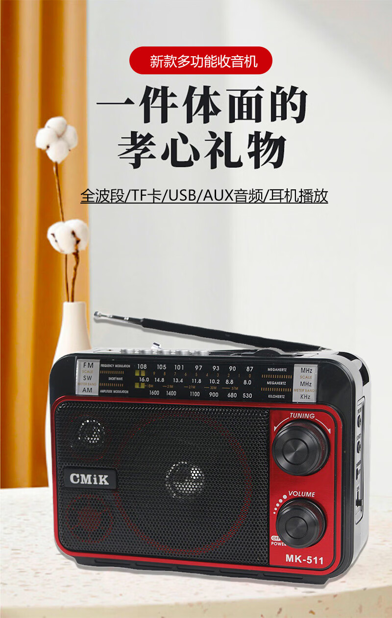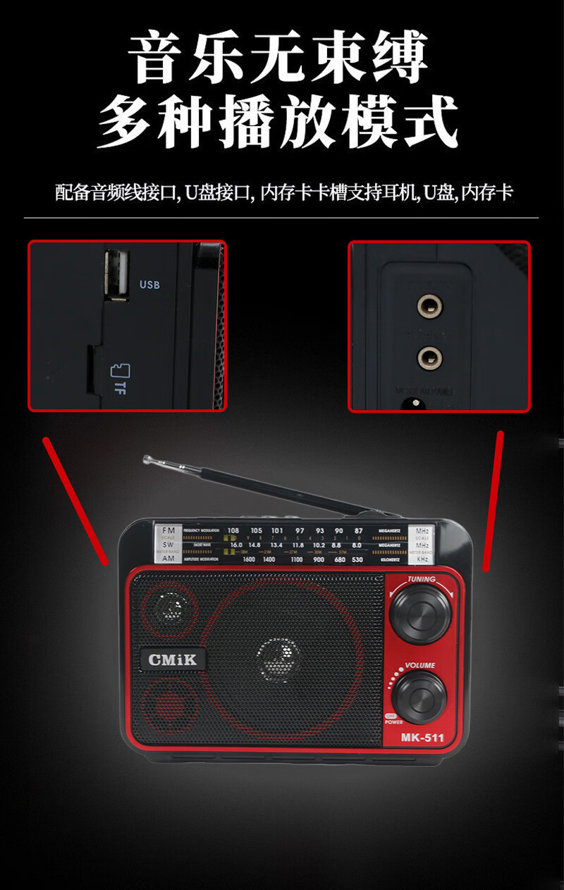 Original suitable for imported German and Japanese full-band plug-in card multi-function radio portable elderly speakers precision radio supports Bluetooth black MK-511BT