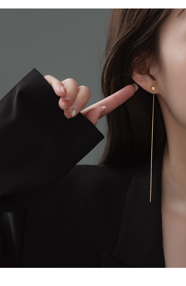 925 sterling silver ear wire earrings for women ins new trendy brushed square long tassel earrings earrings niche high-end sense silver long no Specifications