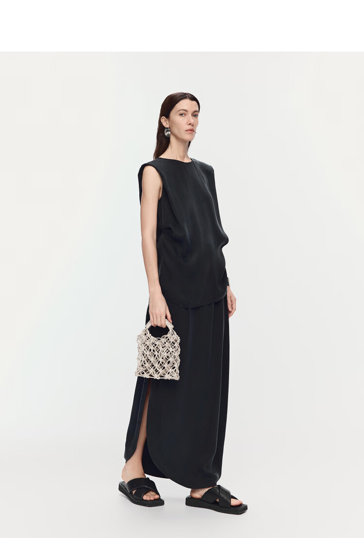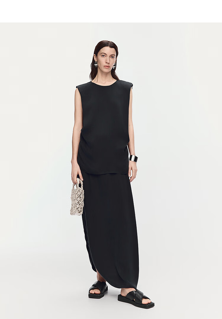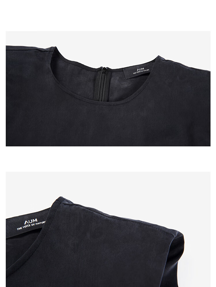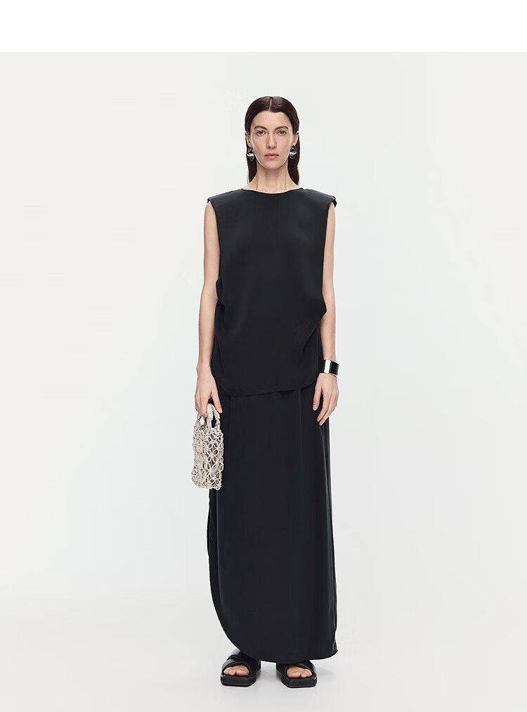 AUM (AUM) Easy Suit AUM AUM 2025 Summer New Structured Draped Top Black Skirt Women Black Top L