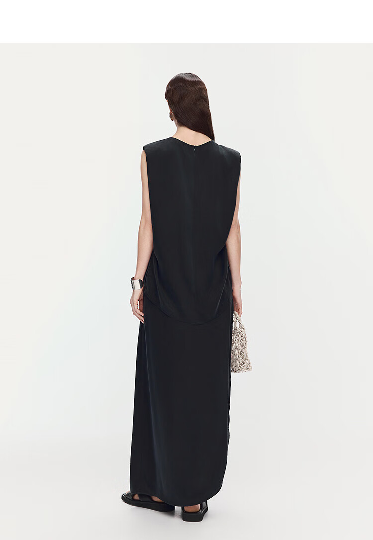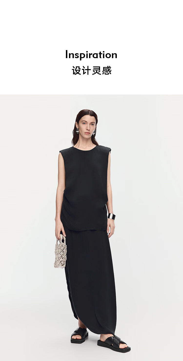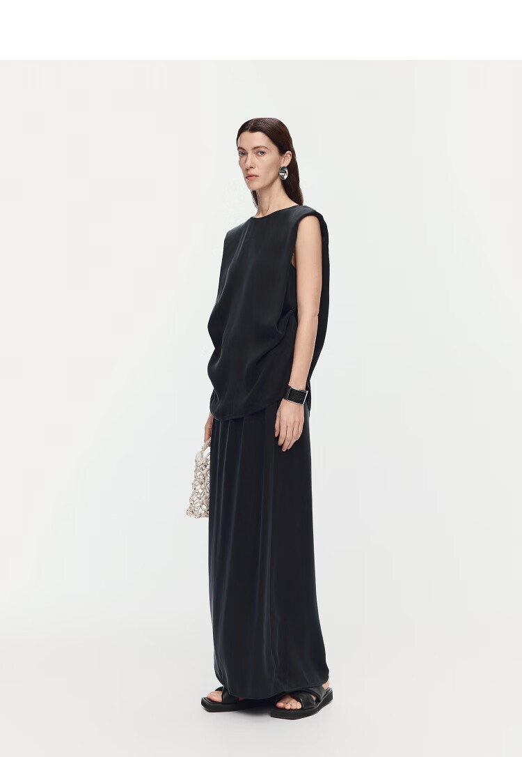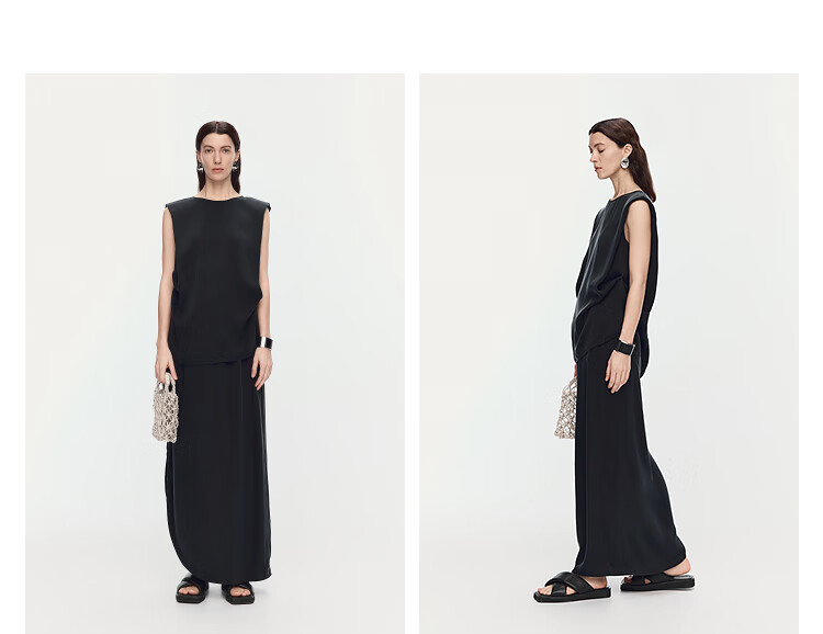 AUM (AUM) Easy Suit AUM AUM 2025 Summer New Structured Draped Top Black Skirt Women Black Top L