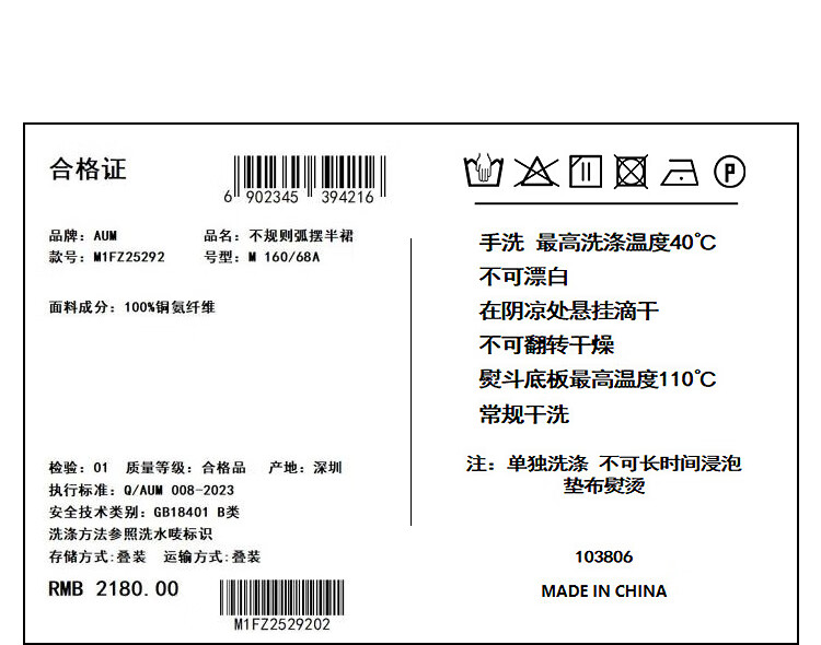 China (cm) 160-165/84-86 165-170 / 88-90 167-172 / 92-96 168-173 / 98-102 170-176 / 106-110