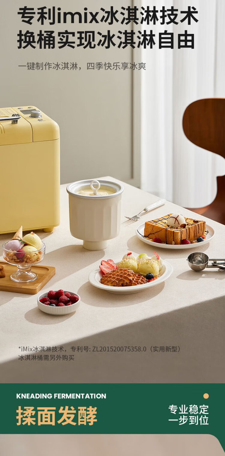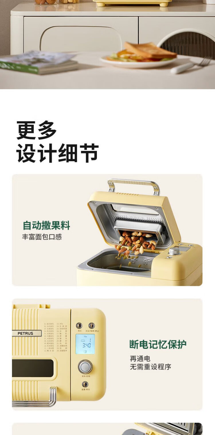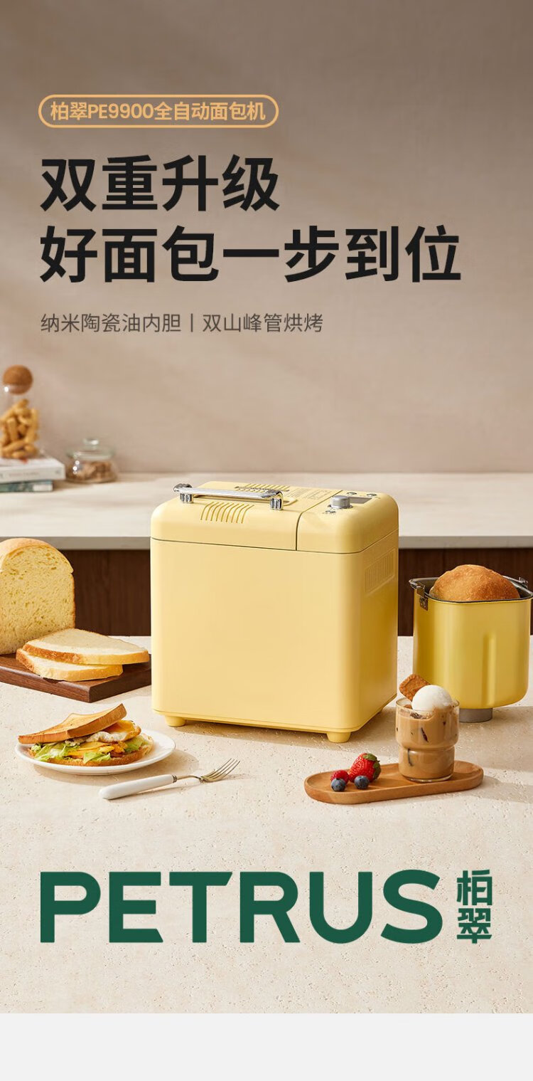 Petrus Toaster Household Fully Automatic Multi-Function Small Breakfast Sandwich Toast and Kneading Dough Light Food Machine Double-tube Ice Cream Holiday Gift PE9900 Creamy Yellow (Big surprise upon inquiry)