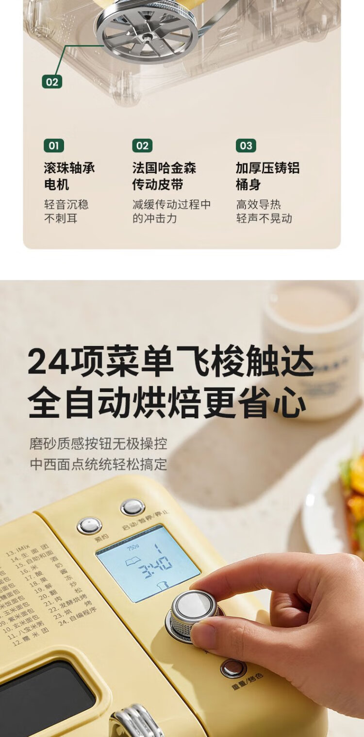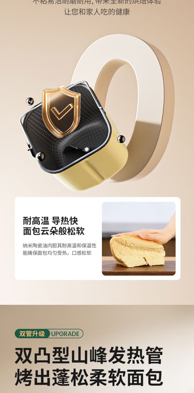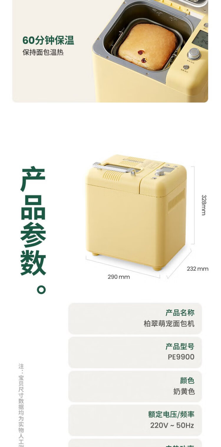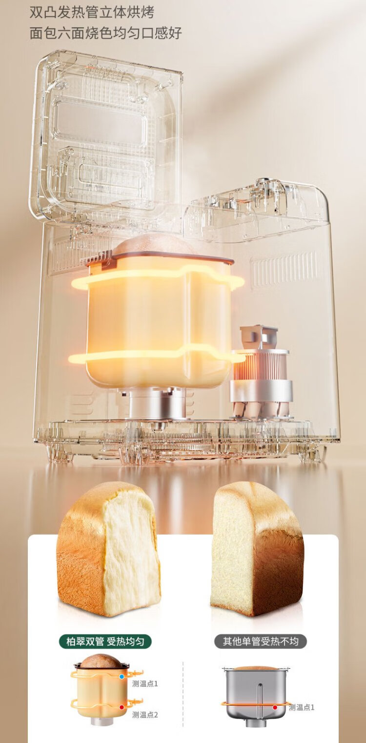 Petrus Toaster Household Fully Automatic Multi-Function Small Breakfast Sandwich Toast and Kneading Dough Light Food Machine Double-tube Ice Cream Holiday Gift PE9900 Creamy Yellow (Big surprise upon inquiry)