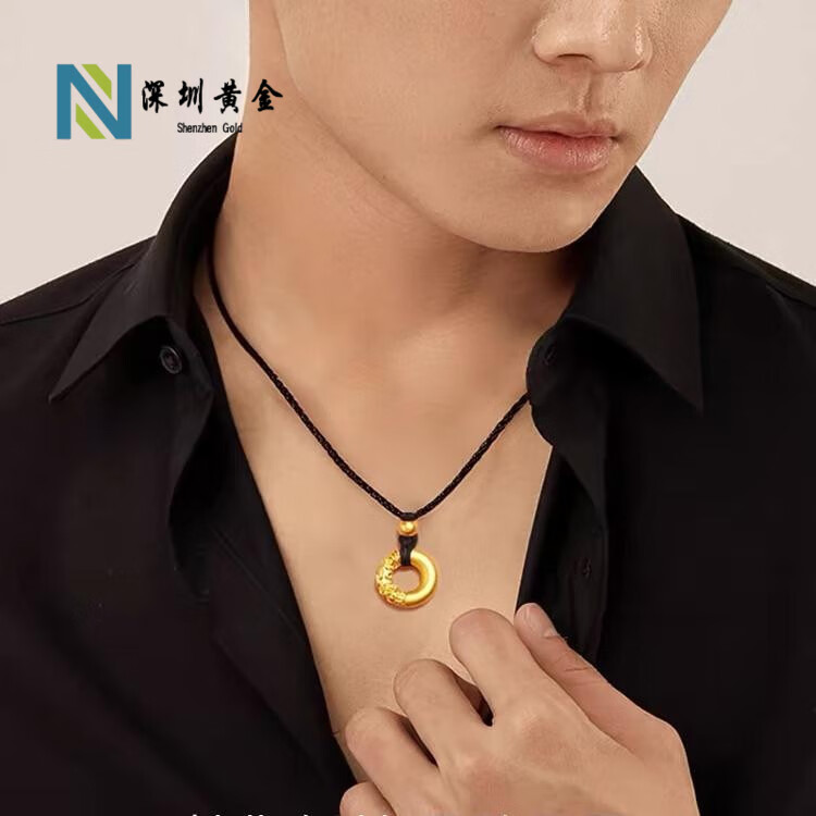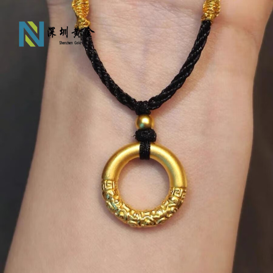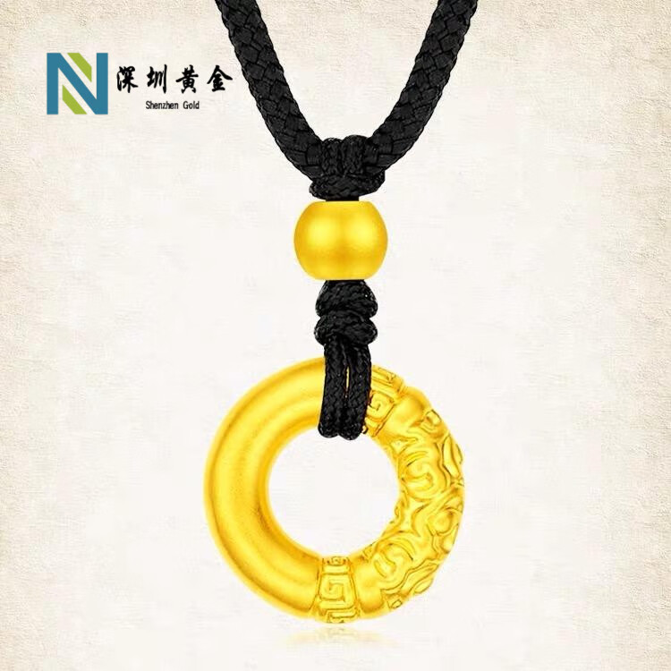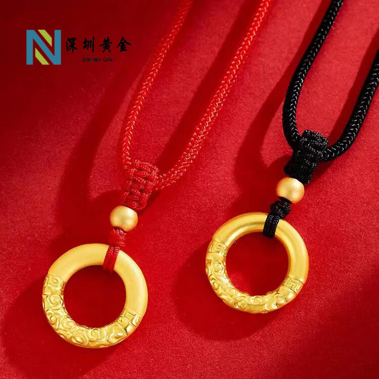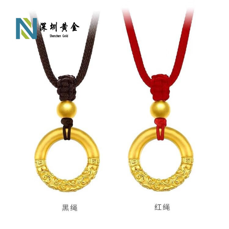 Allied Gold Hoop Spell Auspicious Cloud Peace Buckle Pendant 999 Pure Gold Pendant Gold Hoop Pure Gold Braided Rope Gift New Thickened Version Auspicious Cloud Gold Hoop (Including Gold Beads) Approximately 1