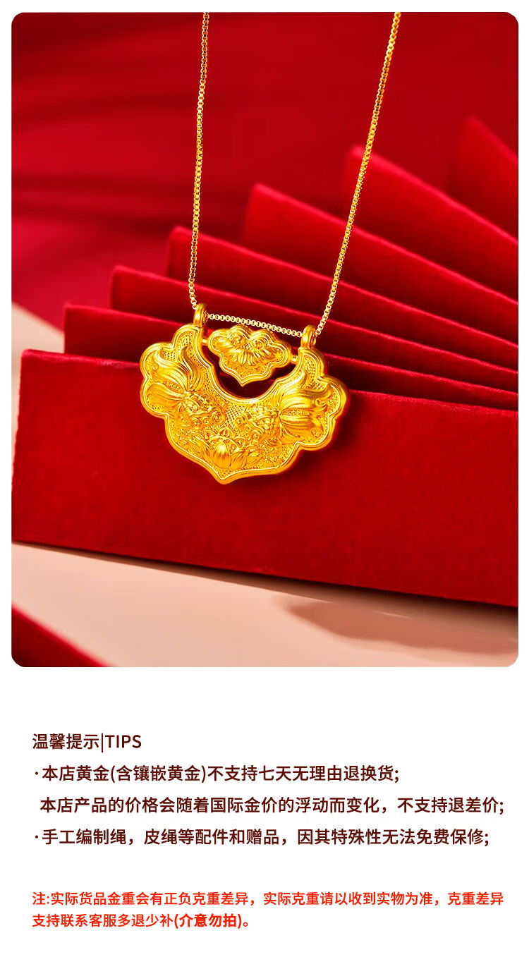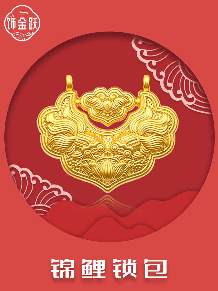 Allied pure gold 999 safety lock koi lock pendant gold braided rope Pisces bell lock bag pendant mother section about 8.5 grams ancient thickened small version Pisces lock (g