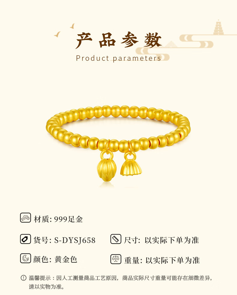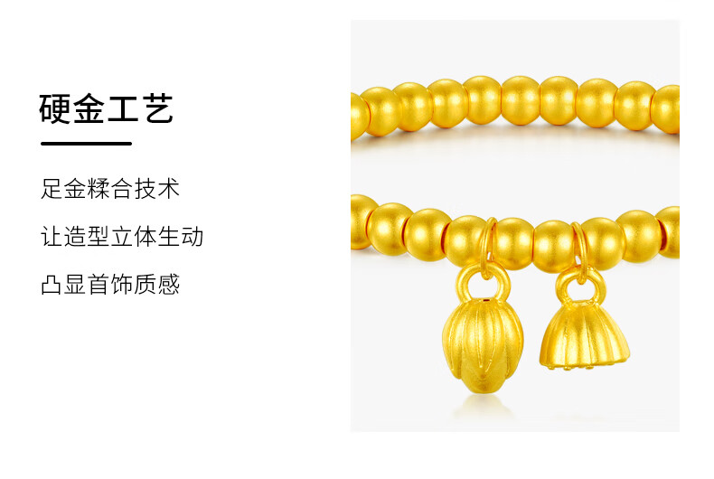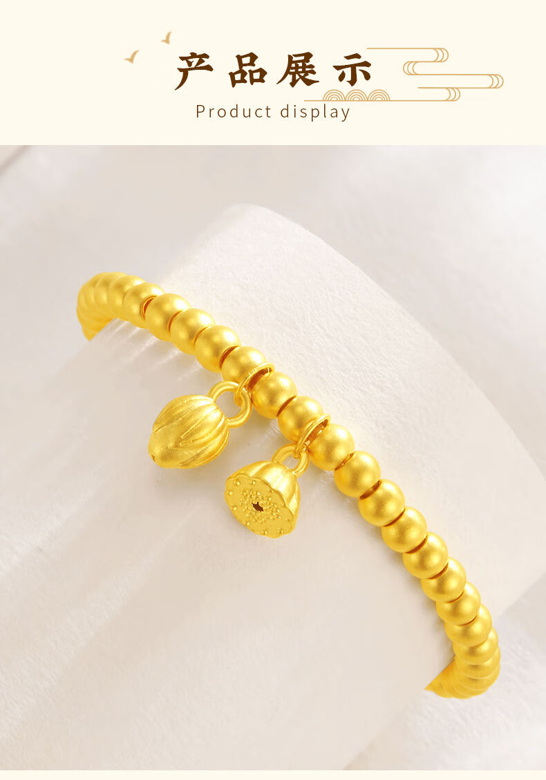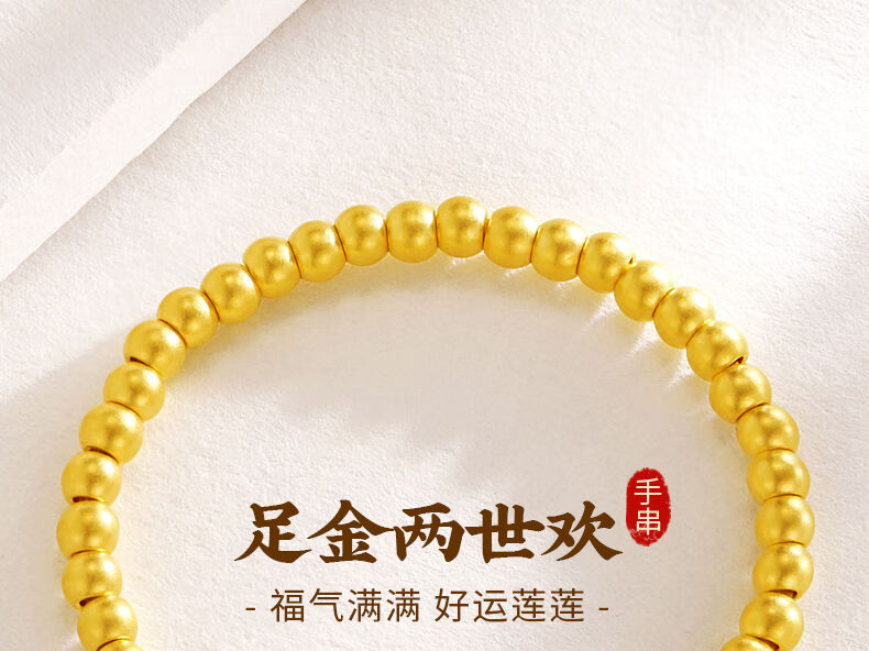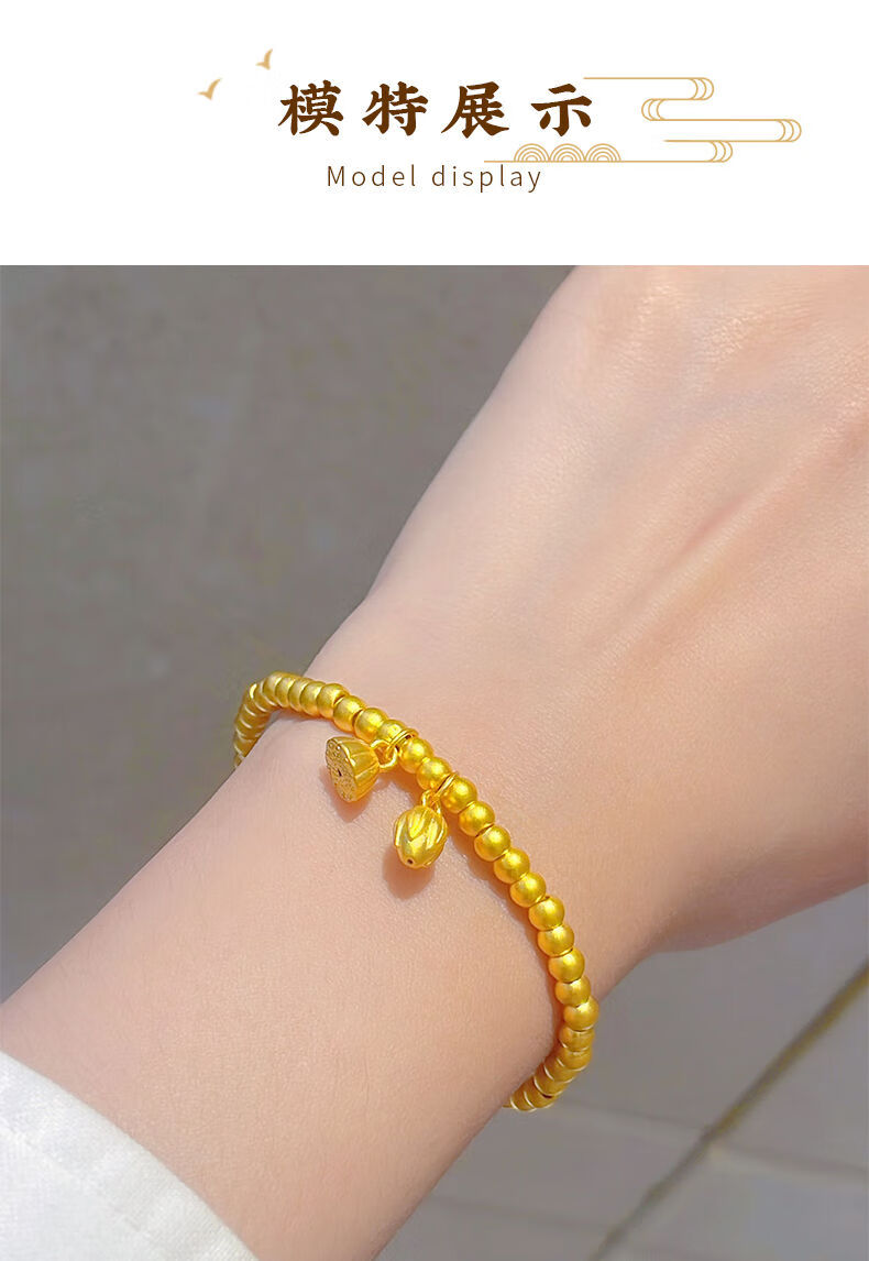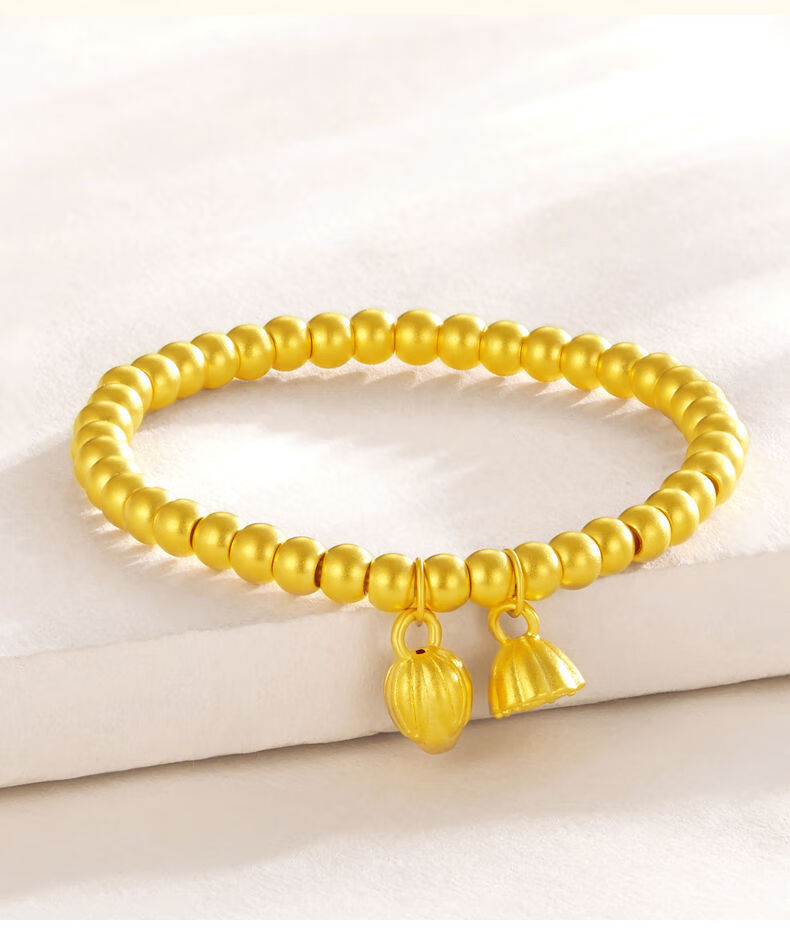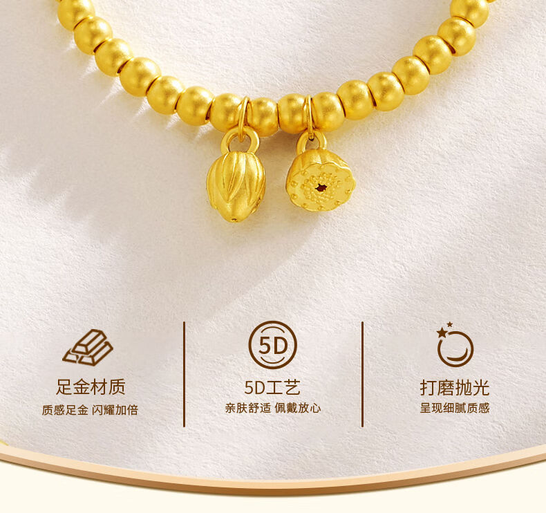Allied 999 Pure Gold Two Worlds Happy Bracelet Women's Ancient Method Gold Heritage Small Gold Beads Lotus Peng Pure Gold Bracelet Two Worlds Happy Bracelet About 2.5 grams