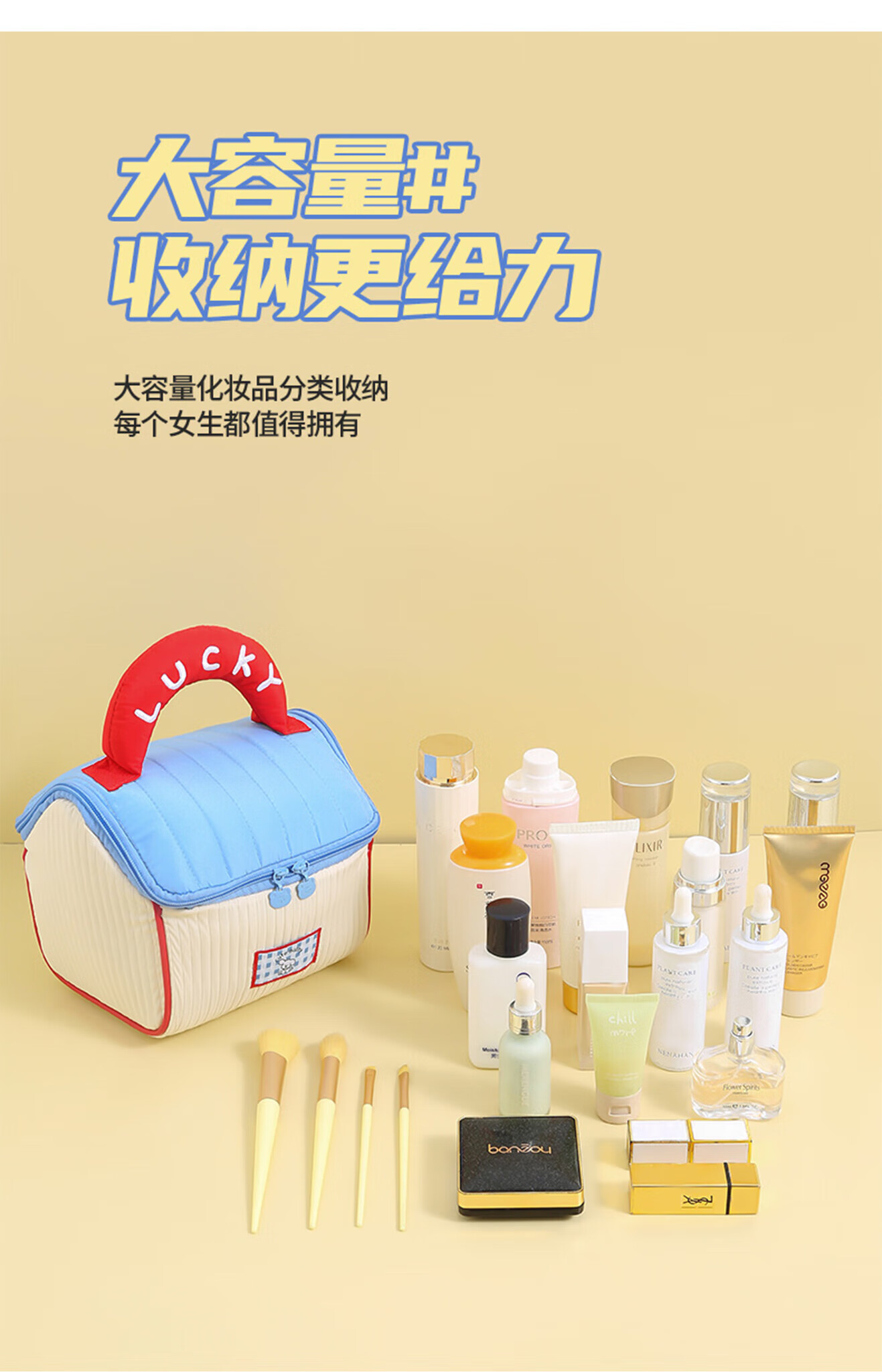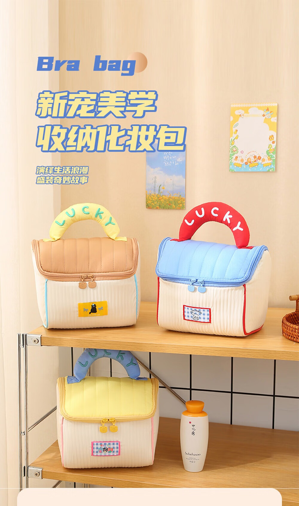 Lu Geli Cosmetic Bag Cute Girl Large Capacity Skin Care Product Storage Bag Portable Handy Travel Toilet Bag Cosmetic Bag Small House