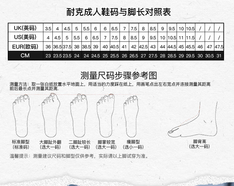 China (cm) 36 - 37 38 - 39 40 - 42 43 - 44 45 - 47