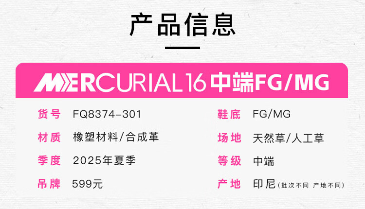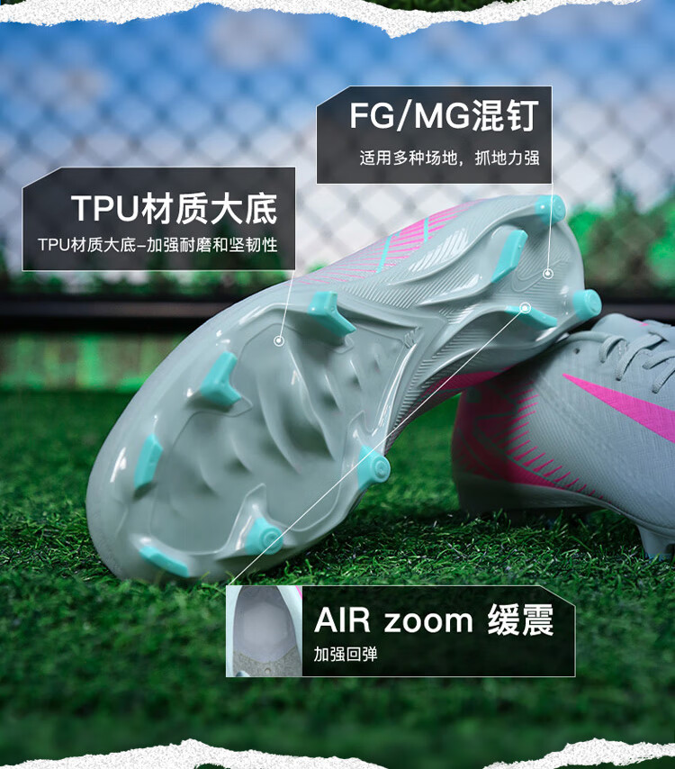 Nike (NIKE) little plum NIKE Nike Mercurial 16 mid-range FG/MG mixed spike football shoes for adults FQ8374-301 gray pink FQ8374-301 40.5 25.5cm