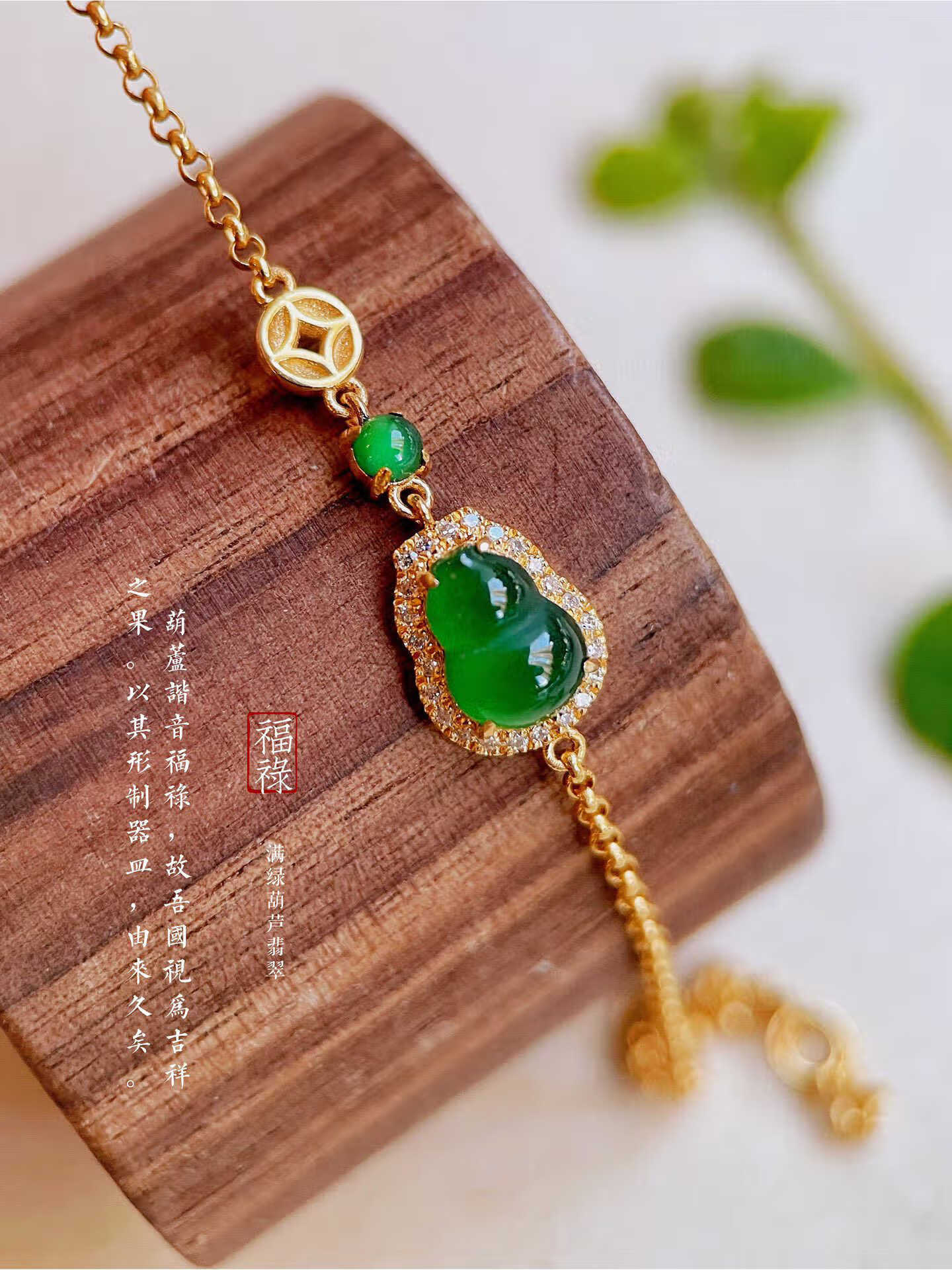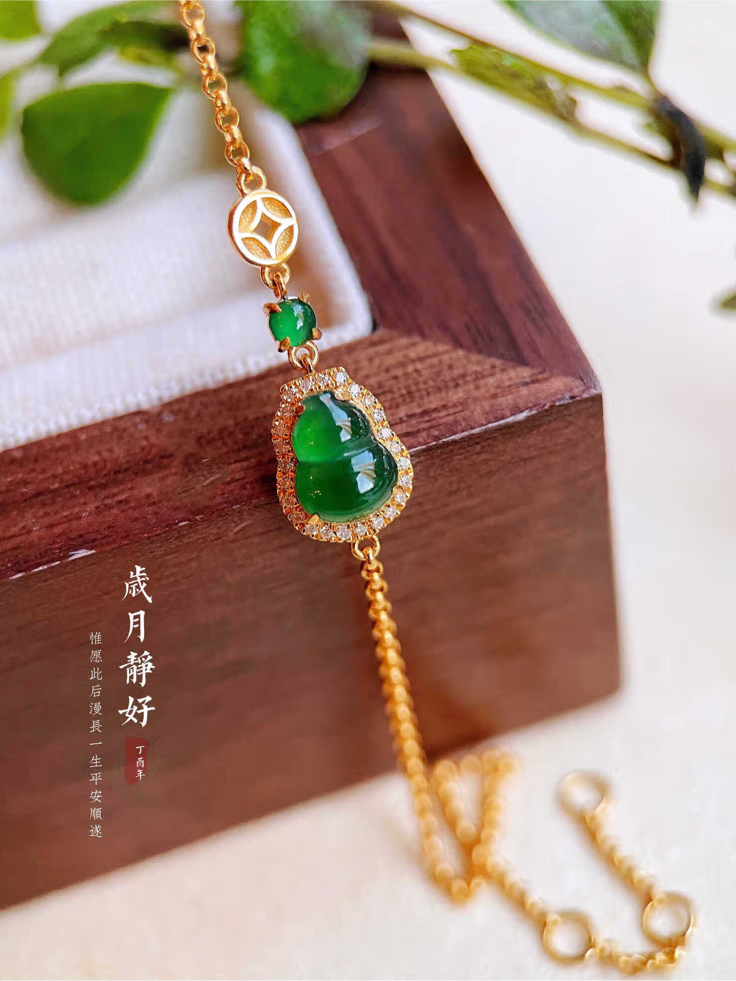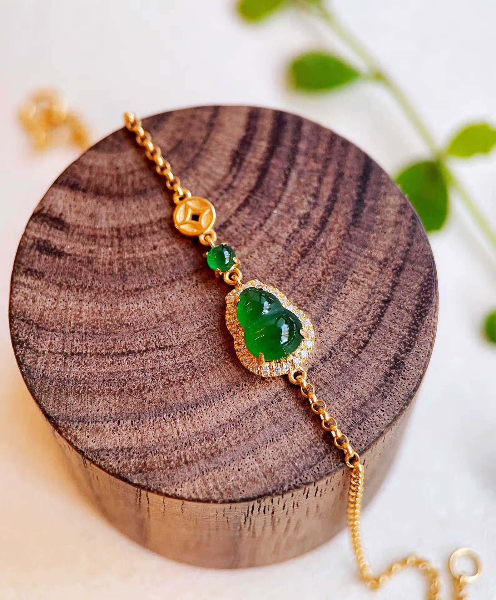 Yadige Ins style 18K gold diamond emerald gourd coin bracelet niche light luxury design exquisite gentle temperament white women
