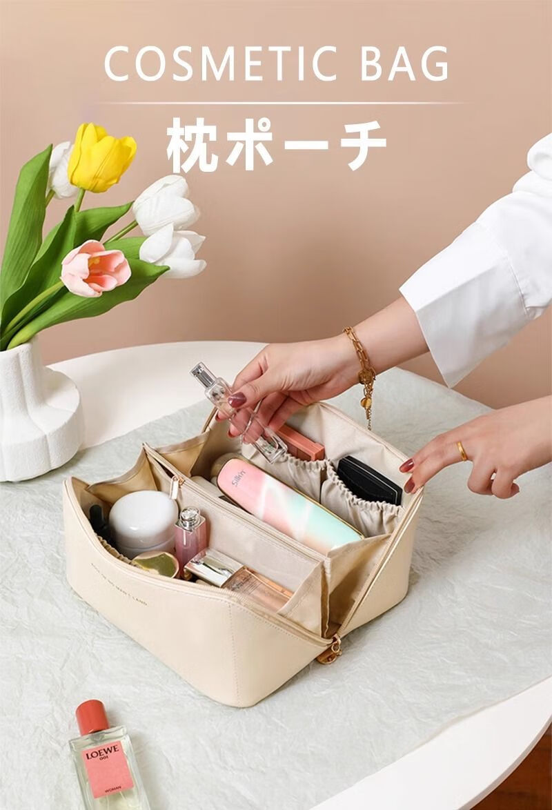 Vinoa cosmetic bag portable large-capacity pillow bag travel toiletry cosmetics storage bag milkshake white increased capacity + divided storage durable