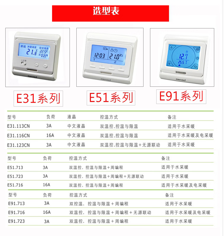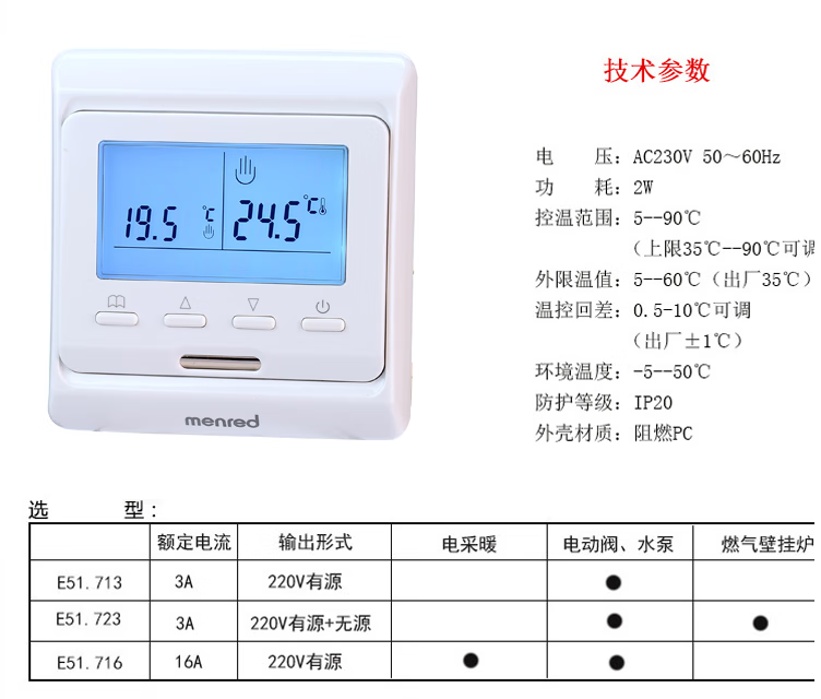Manred floor heating thermostat water heating electric heating E31.116E51.713E51.716E51.723 E51.716 electric heating