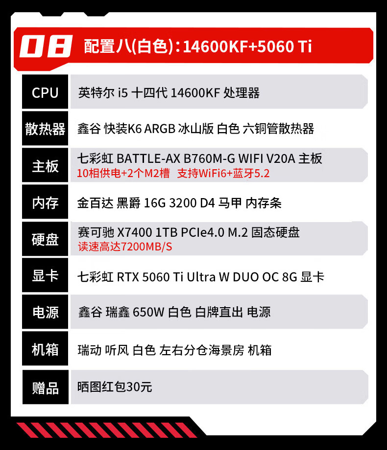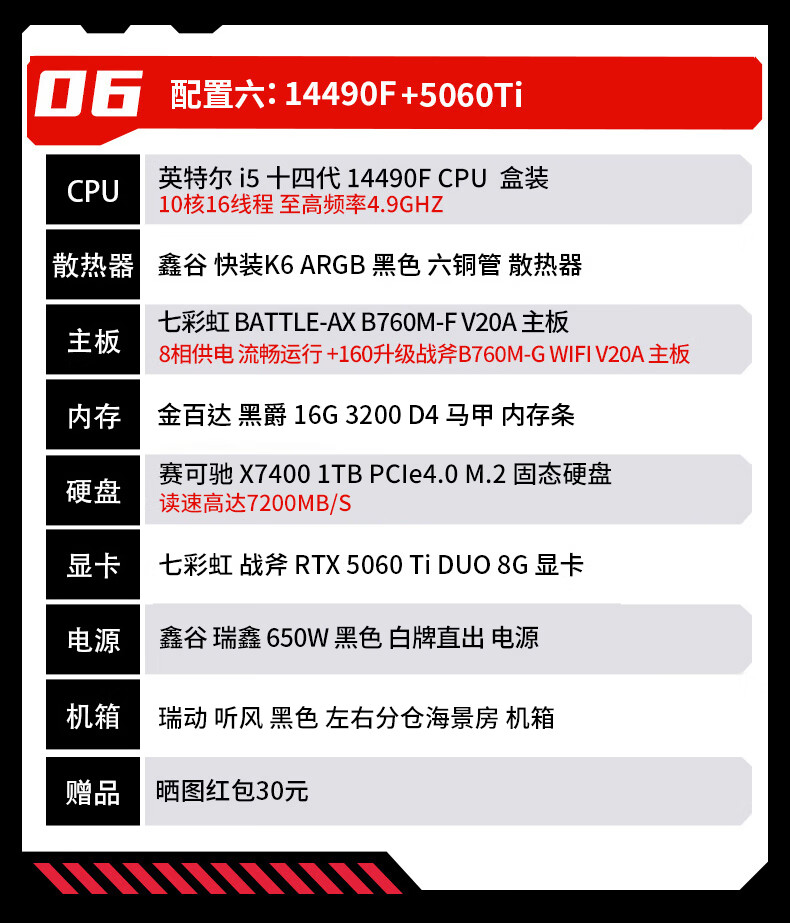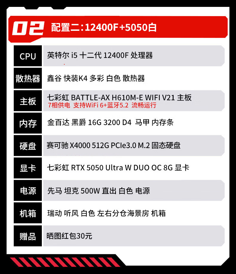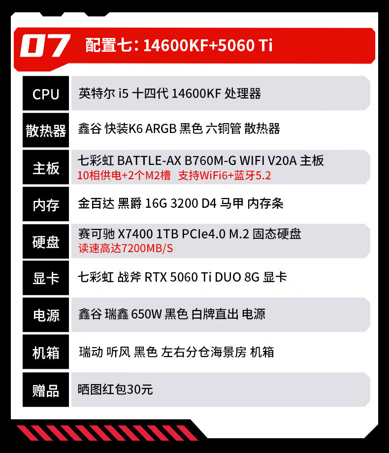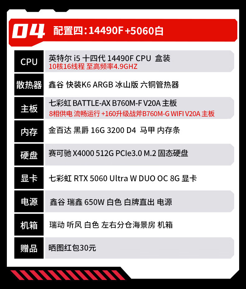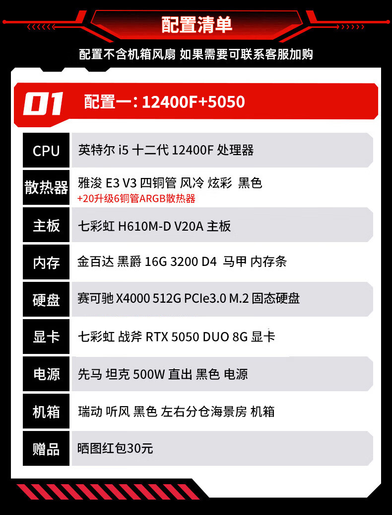 Colorful (Colorful) 24-issue interest-free Intel 13400F/14400F/14600KF assembled computer desktop 5060 e-sports game 5050 host DIY complete machine 5060Ti configuration one 12400F+5050 graphics card