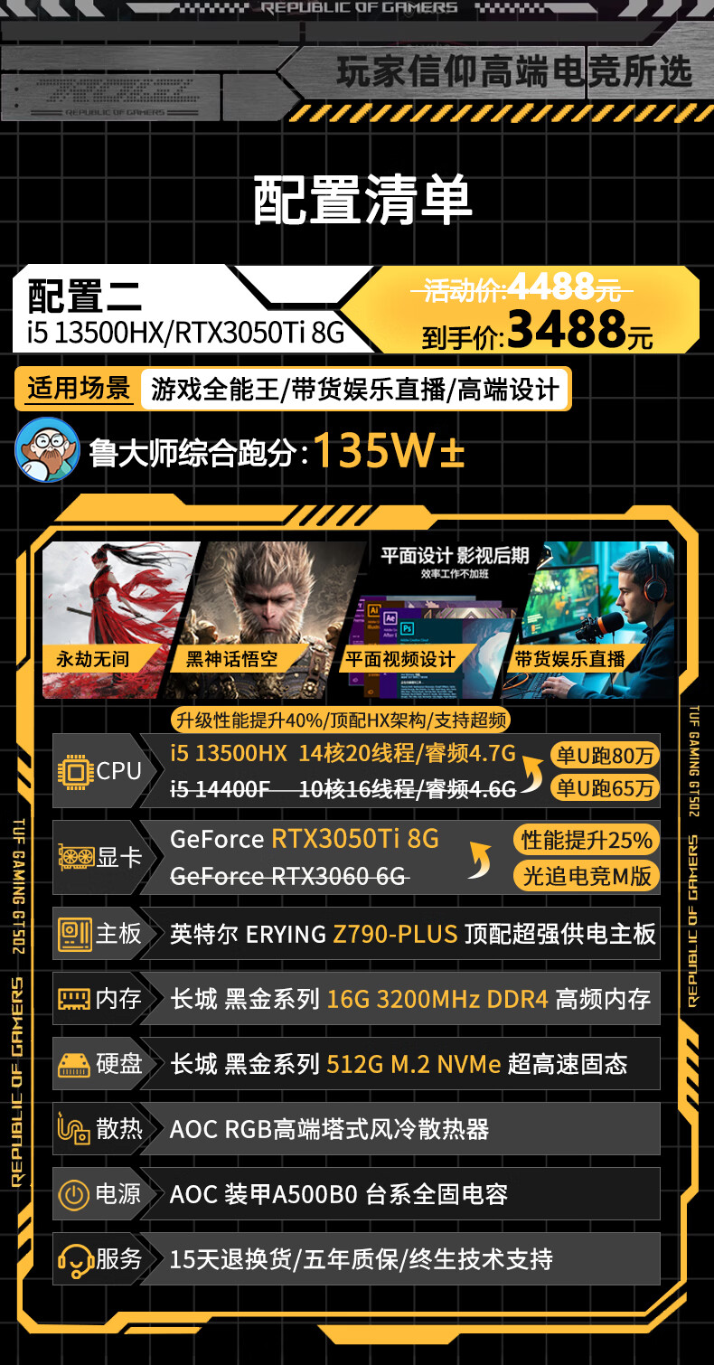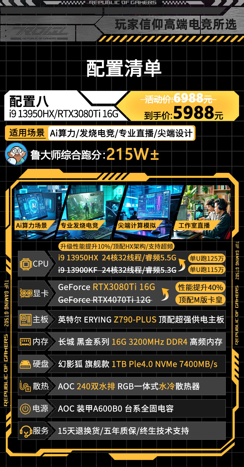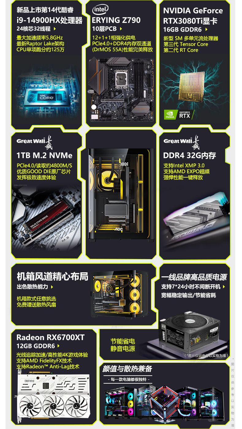 AOC Intel 14th generation Core i9 14900/i7 14700+RTX4080/RTX4070Ti/RTX4060 independent display desktop computer game Ai design live broadcast host configuration four丨i5 13600KF+RTX4060 computer host丨five-year warranty AI computing power丨e-sports丨design丨live broadcast