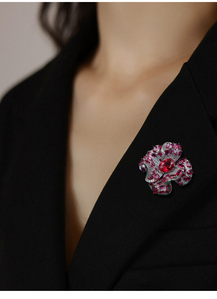Feiyu light luxury peony flower brooch high-end exquisite fashion with coat suit corsage pin buckle high-end women's luxury temperament red peony flower