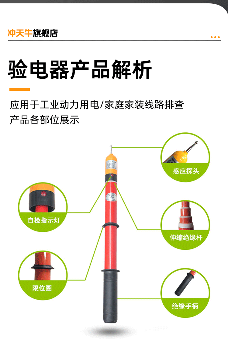 High-voltage sound and light electroscope electroscope pen 10kv electroscope pen high-voltage electroscope pen 35kv electroscope to ensure testing, freely telescopic 10kv round head, pole length 1 meter