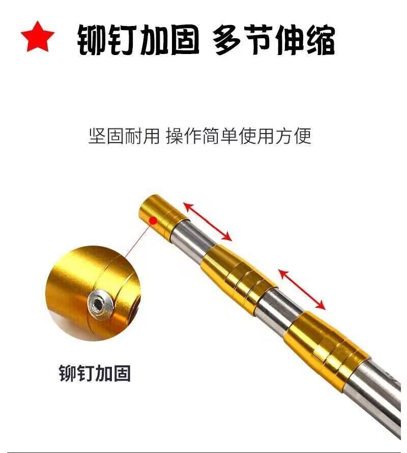 Yunlu stainless steel copy net 3 meters 4 meters 5 meters 6 meters telescopic pole set fishing net bag folding fishing copy net head fishing gear black nano net + white pole 2.5m