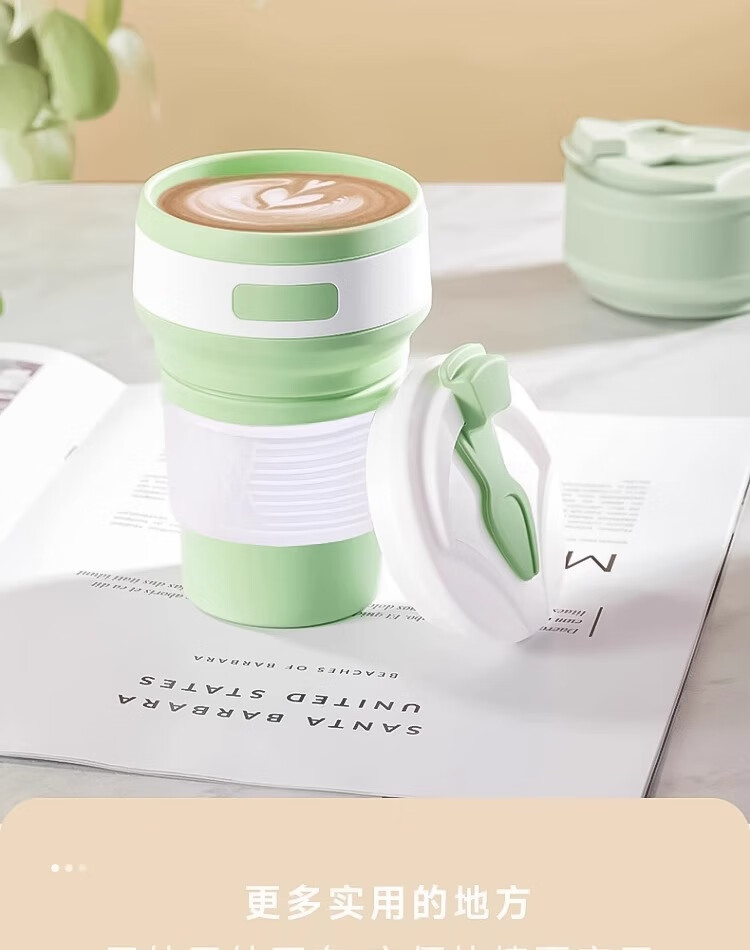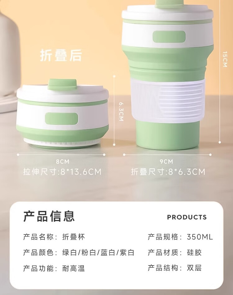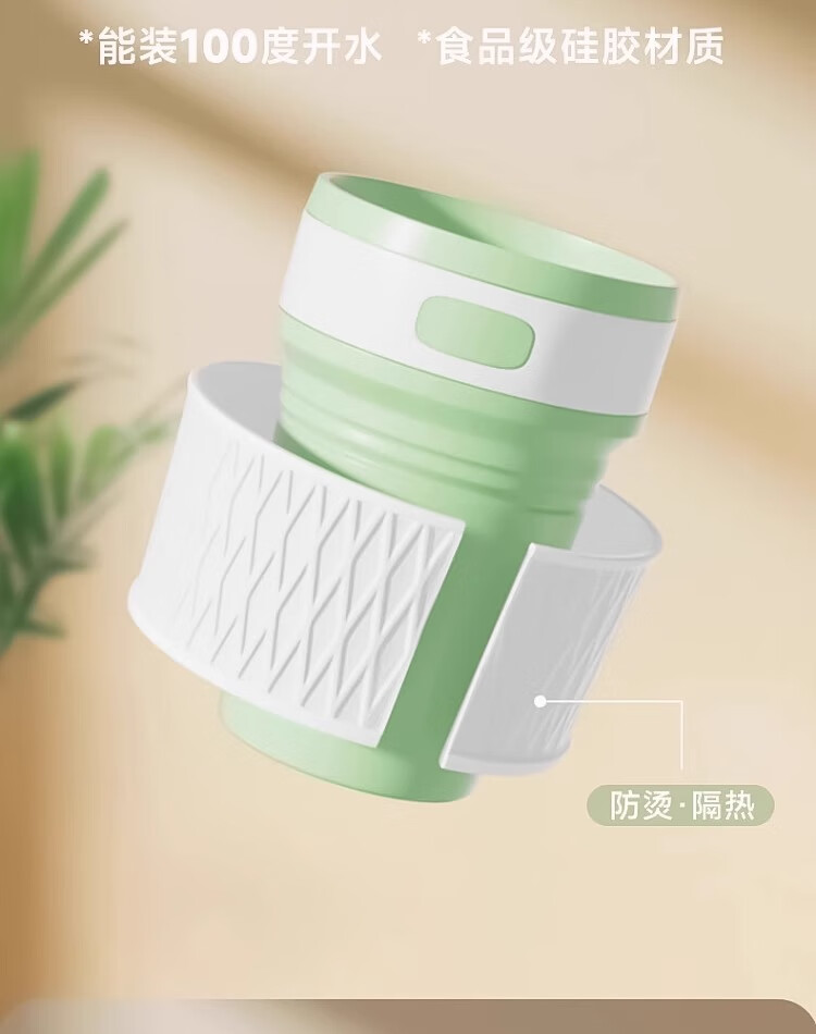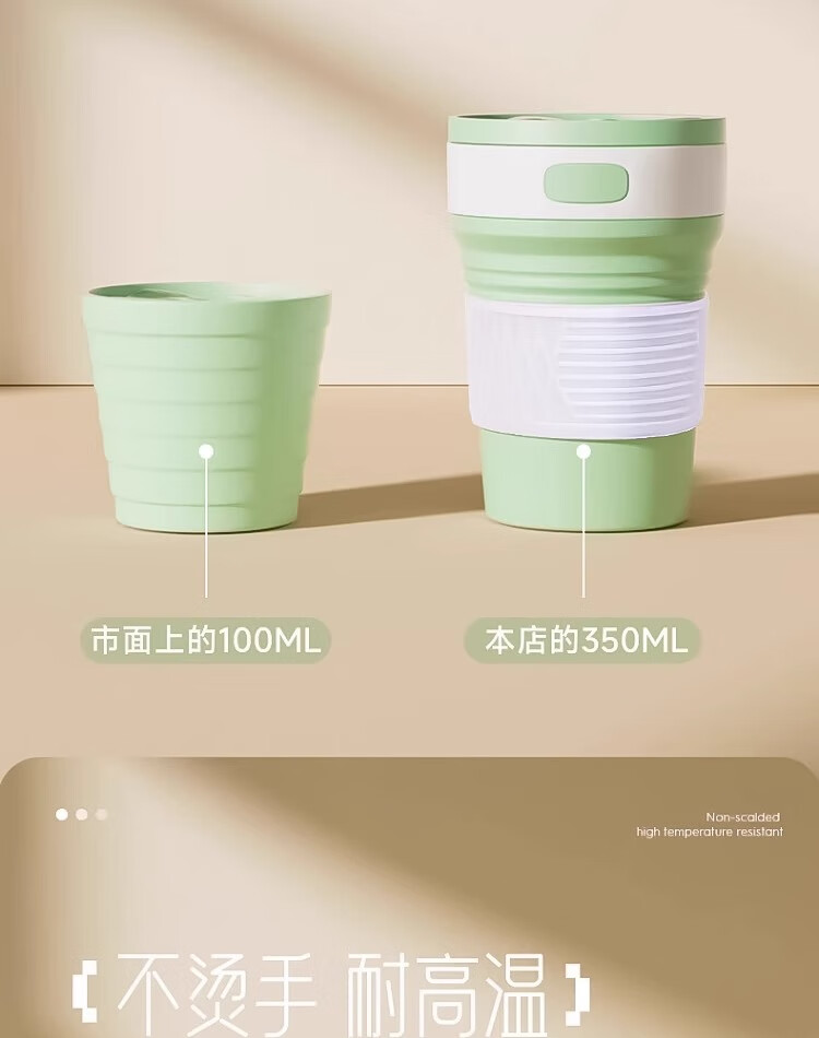 Travel Folding Water Cup Portable High Temperature Resistant Insulation Outdoor Camping Travel Food Grade Silicone Retractable Cup Silicone Folding Cup - Green - 1 piece 350ml