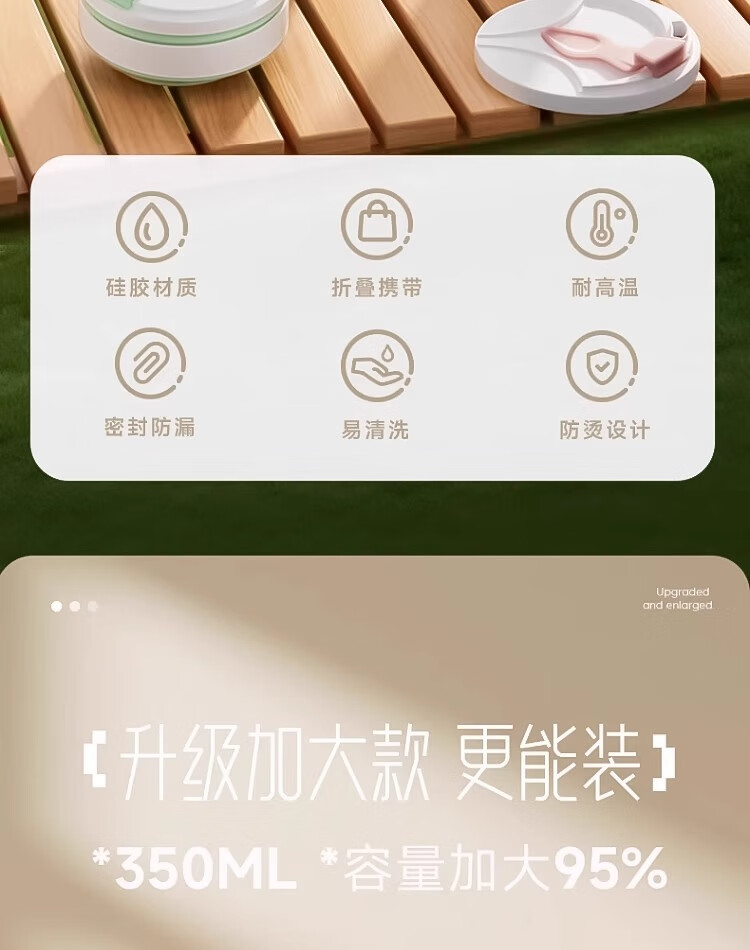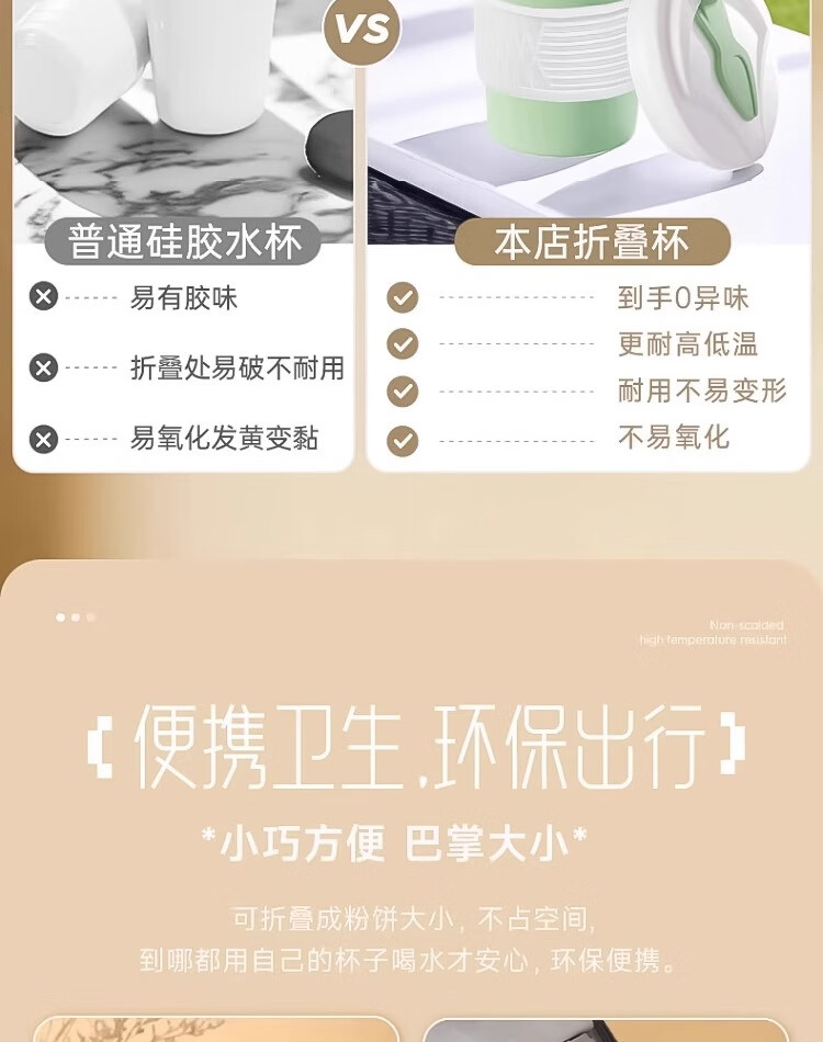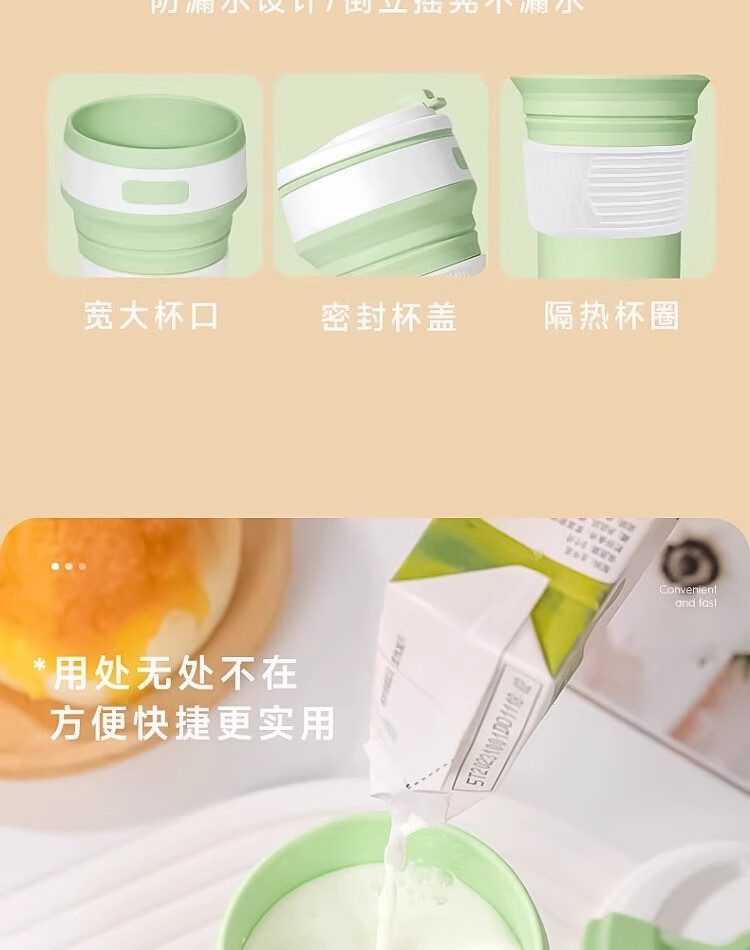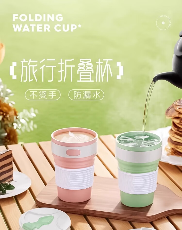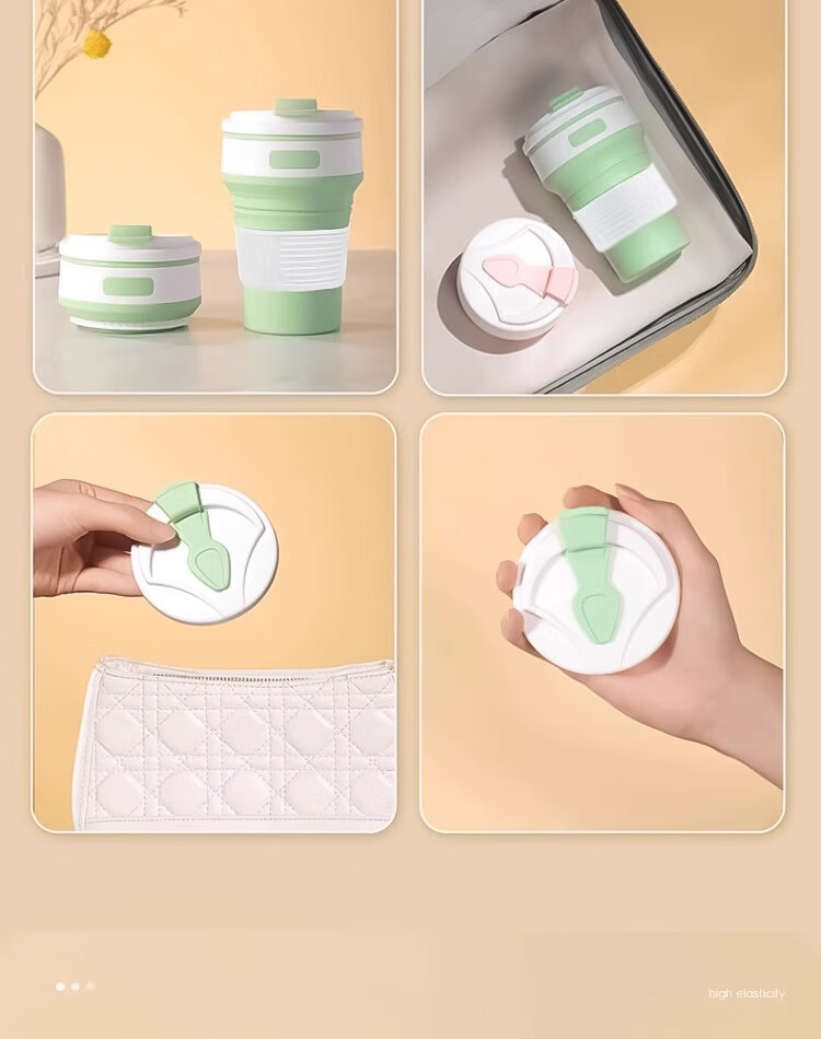 Travel Folding Water Cup Portable High Temperature Resistant Insulation Outdoor Camping Travel Food Grade Silicone Retractable Cup Silicone Folding Cup - Green - 1 piece 350ml