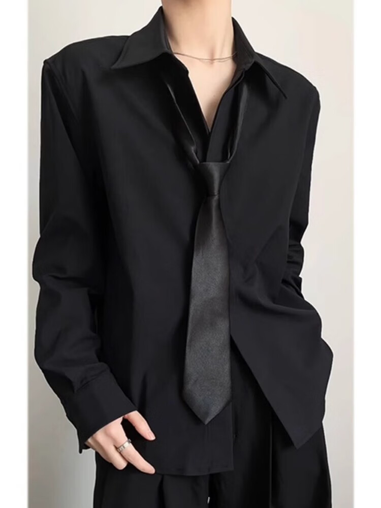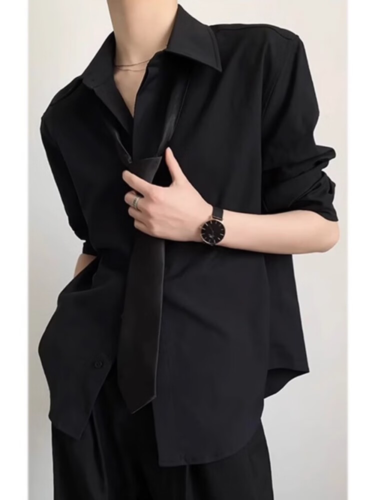 Digada black long-sleeved shirt for men in autumn and winter, handsome drapey inner, versatile, high-end, loose casual shirt jacket JCF-C161 black XL