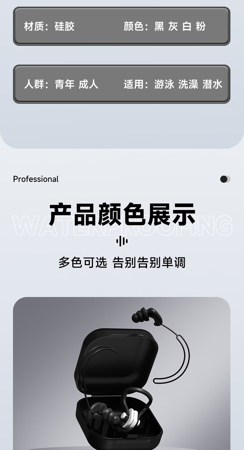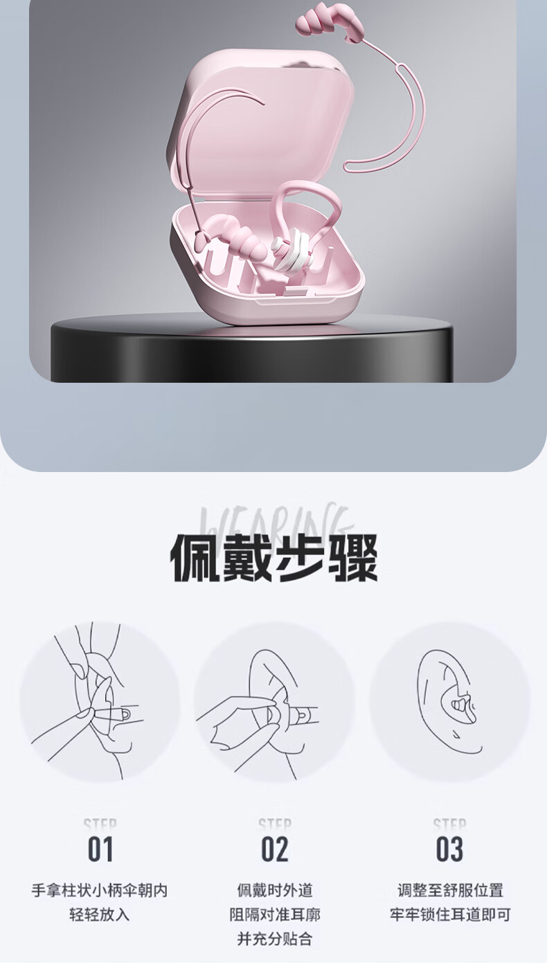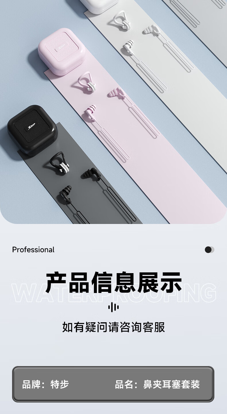 Xtep swimming earplugs are waterproof and non-soundproof, professional anti-choking nose clip, anti-otitis media artifact, children's bath set, cherry blossom powder, anti-lost earplugs + nose clip, one size fits all