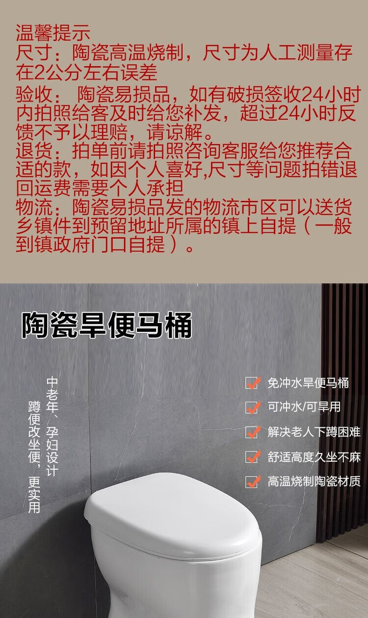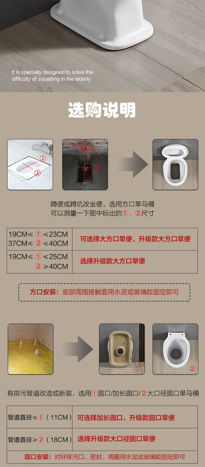 Pupan rural toilet renovation dry toilet dual-purpose ceramic flush-free straight-through squat toilet converted into a sitting toilet toilet for the elderly j extra long square mouth + cover