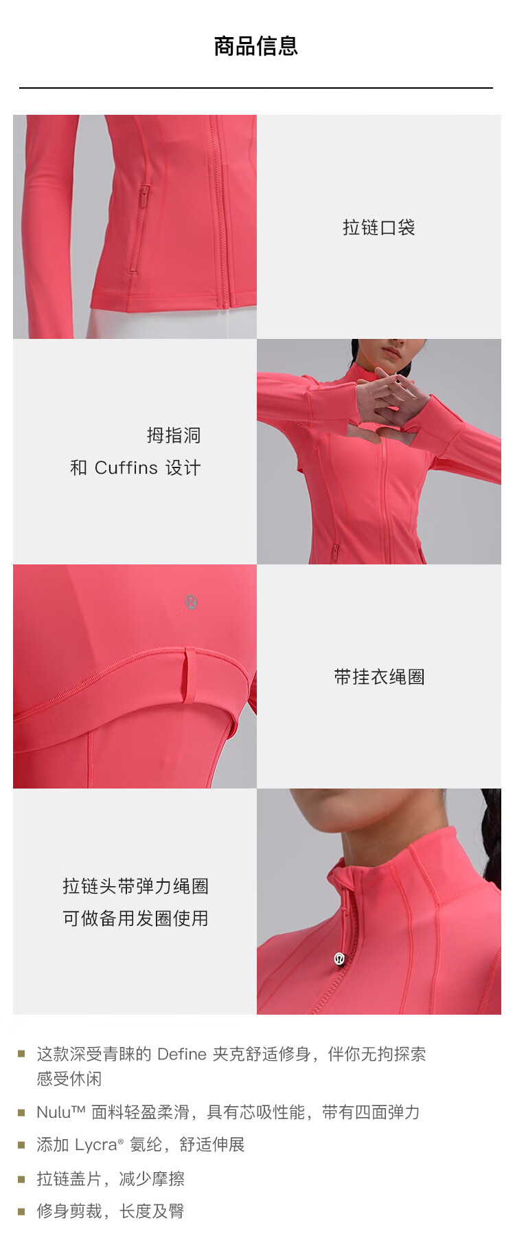 Lululemon丨Define women's sports jacket*Nulu wicking LW4CAFS soft gauze powder XS /4