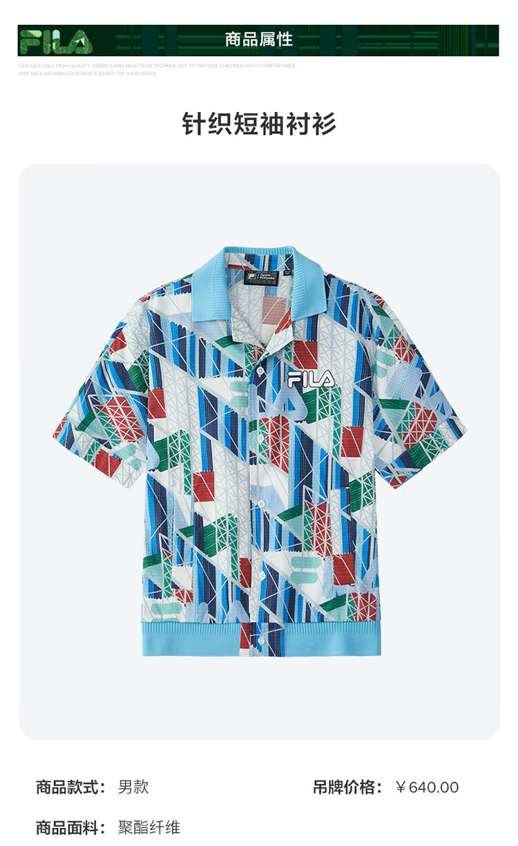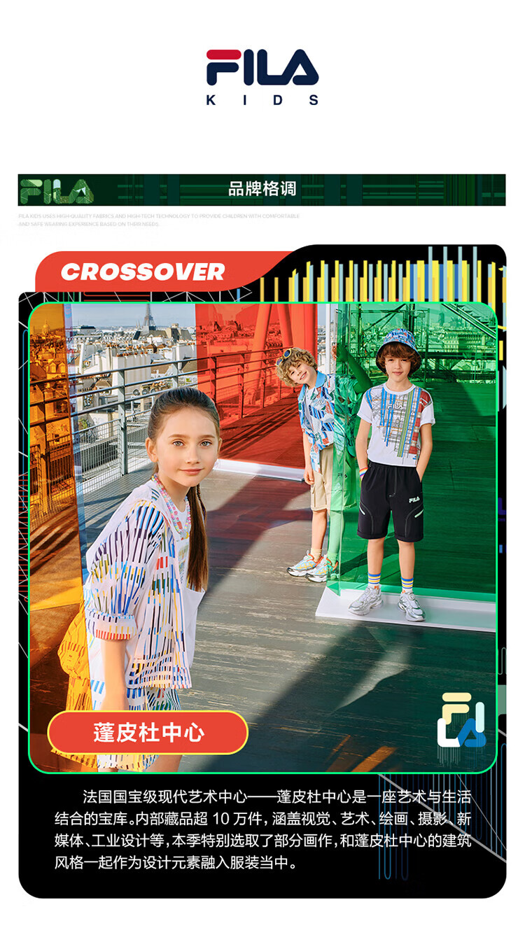Fila x Pompidou Center Fila Children's Clothing Children's Shirt New Men's and Large Children's Casual Short-Sleeved Tops Full Print One-ZA 150 cm