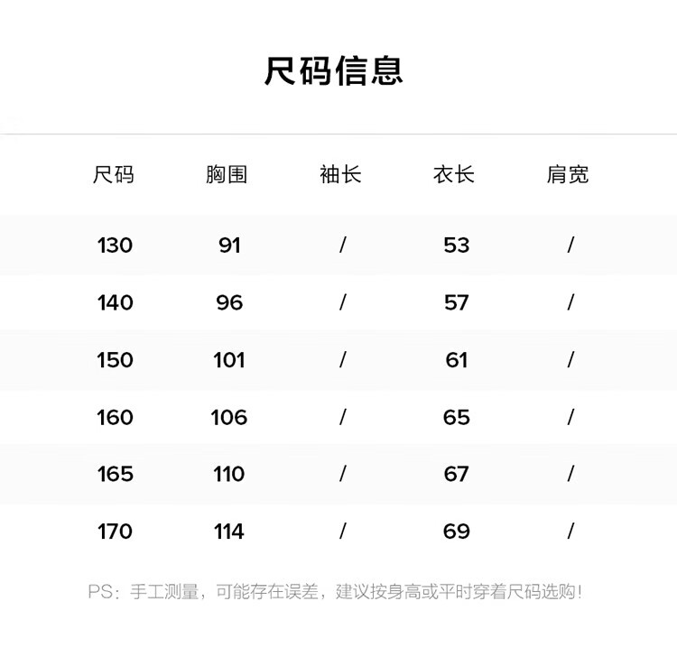 China (cm) 160-165/84-86 165-170 / 88-90 167-172 / 92-96 168-173 / 98-102 170-176 / 106-110