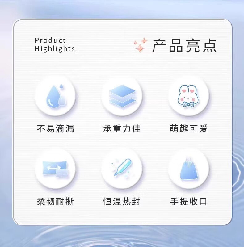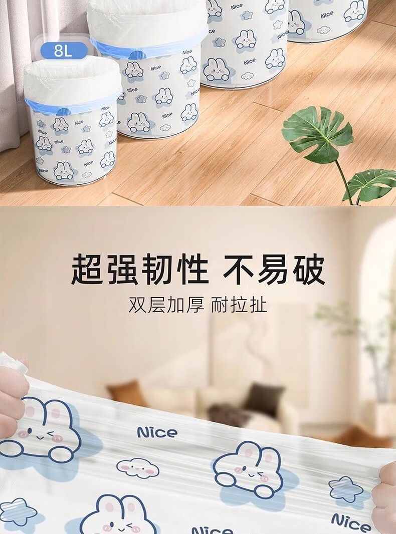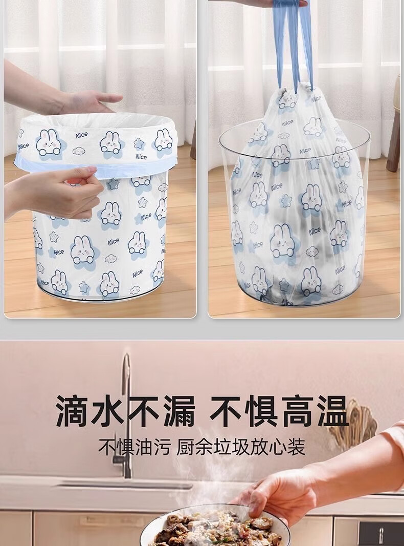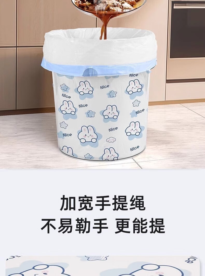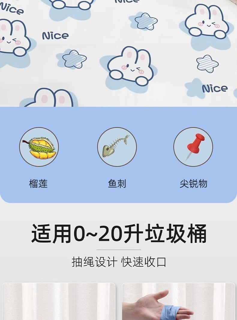 Shy Xiaoqing printed drawstring garbage bag cartoon rabbit thickened automatic closing drawstring handbag trash can bag drawstring blue heart rabbit garbage bag 1 roll
