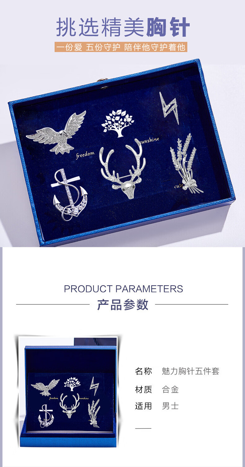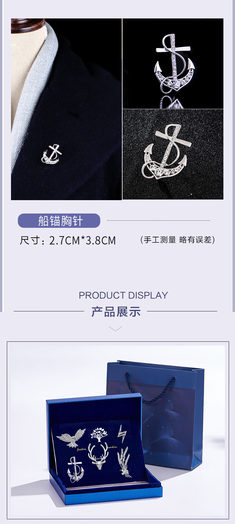 WOUG sense men's brooch one week brooch set temperament anchor pin decoration boys birthday T452 men's brooch set alloy