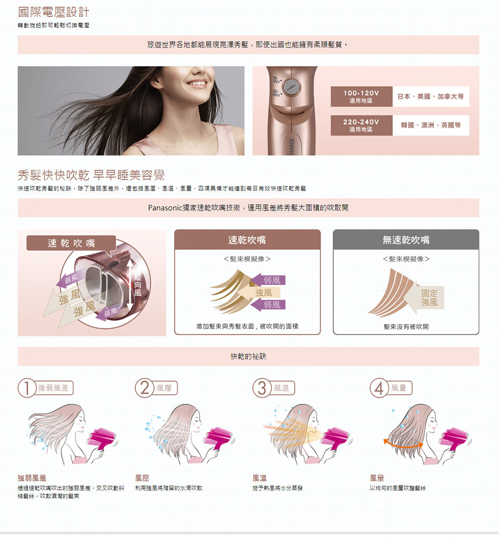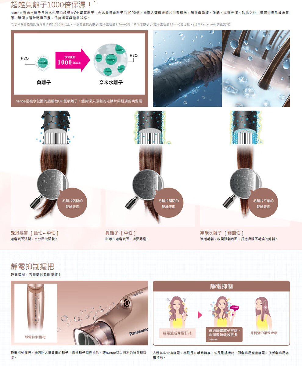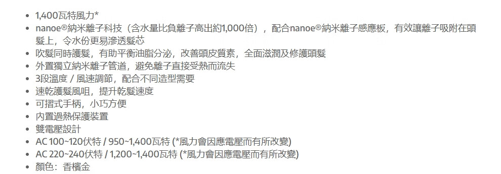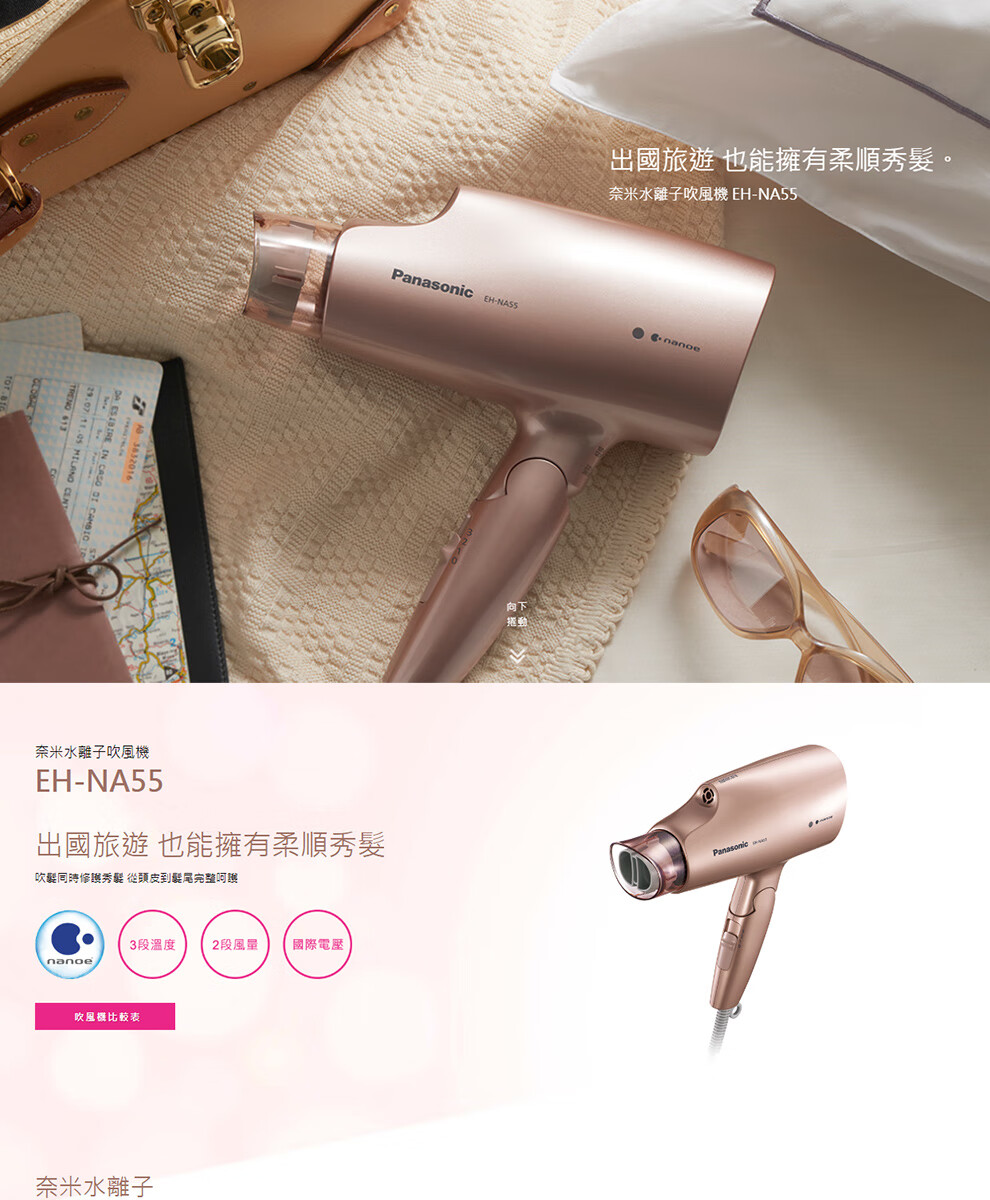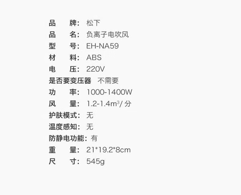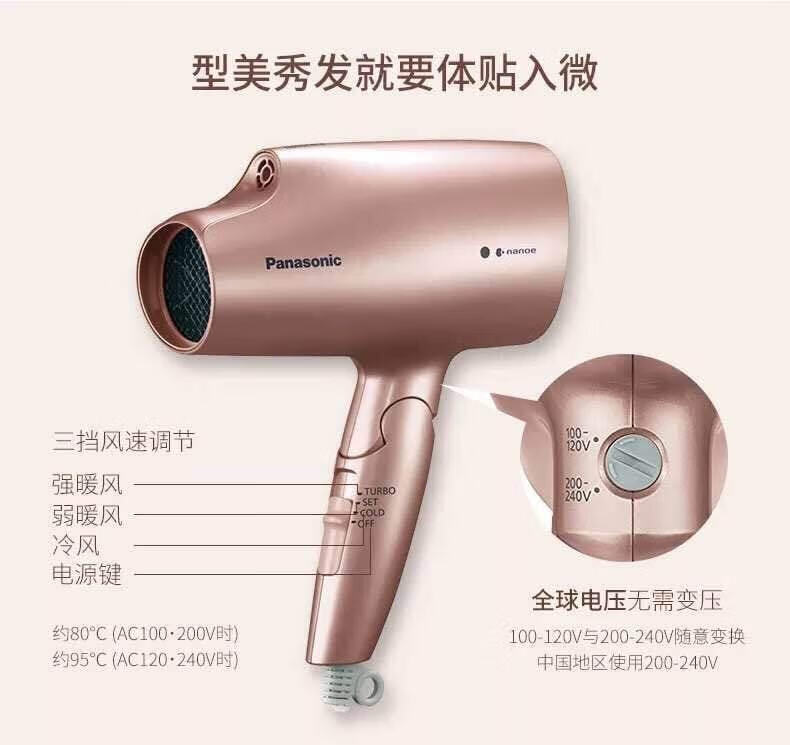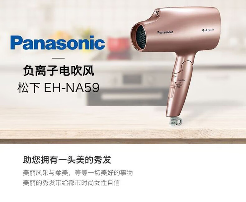 Panasonic EH-NA59 Hair Dryer Nano Water Ion High Wind Quick Drying Hair Care Hair Dryer Home Hair Dryer EH-NA55-Champagne Gold