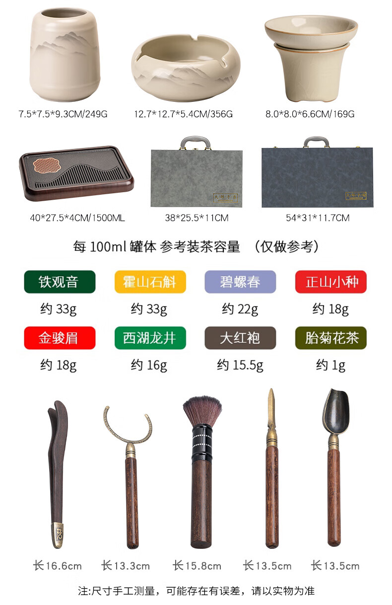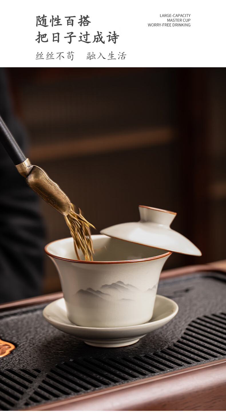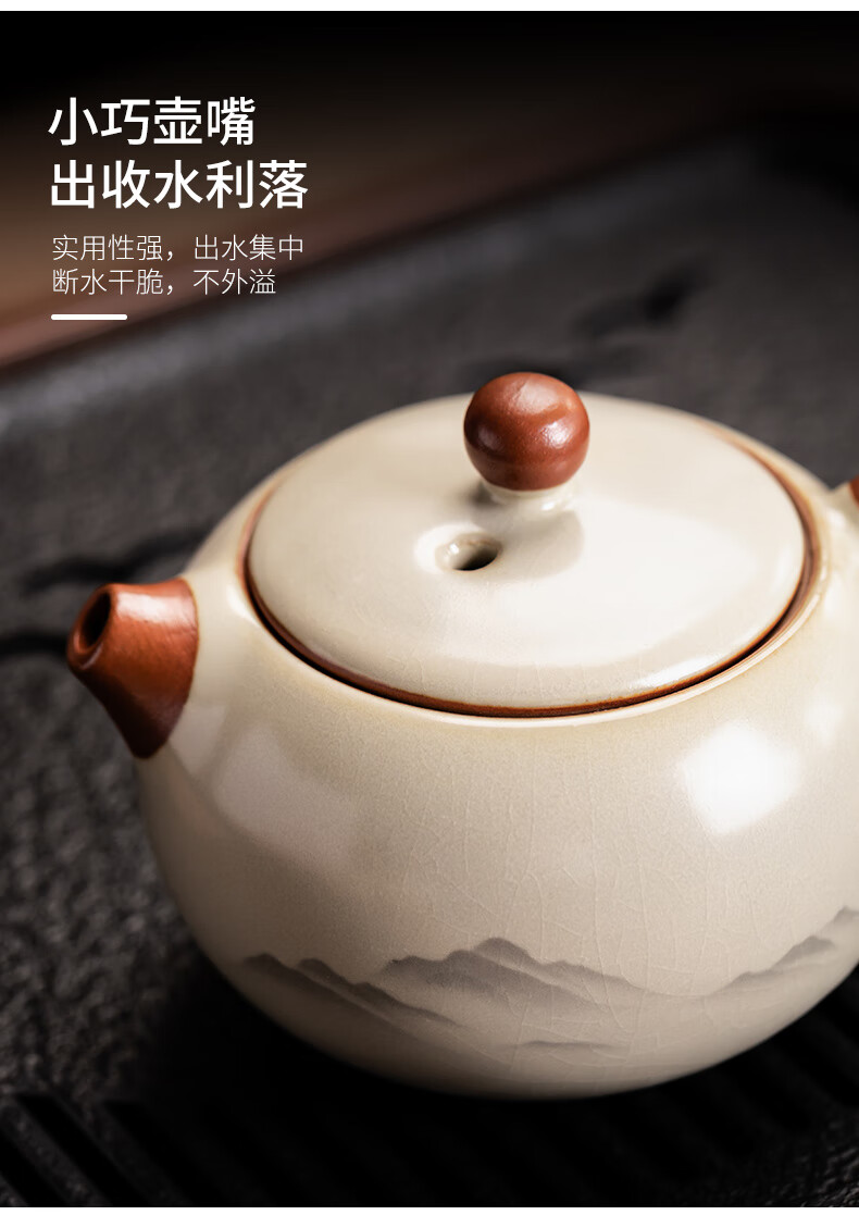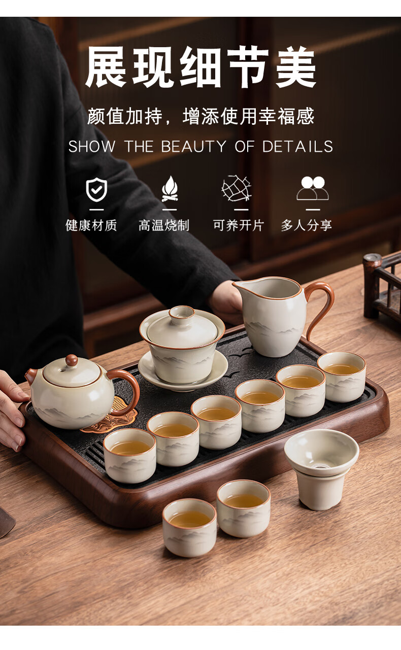 Porcelain brand tea set, ink and wash Guanshan tea set, complete set of Ru kiln teapot and tureen, kung fu tea set, gift box for home use, ink and wash Guanshan teapot and tureen, 8 cups, 13 pieces + tea tray