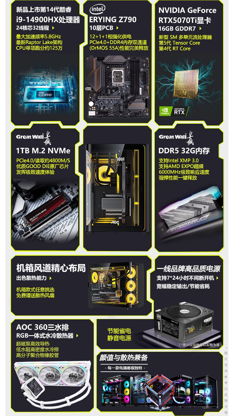AOC Colorful RTX5070/RTX5070Ti top-end independent graphics + Intel 24-core 14th generation i9 14900/i7 14700 console game live broadcast AI design assembly computer with a 16-core 14th generation i7 + RTX5070 12G RTX5070 graphics card new product launch + 14th generation overclocking processor