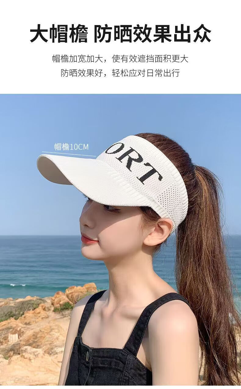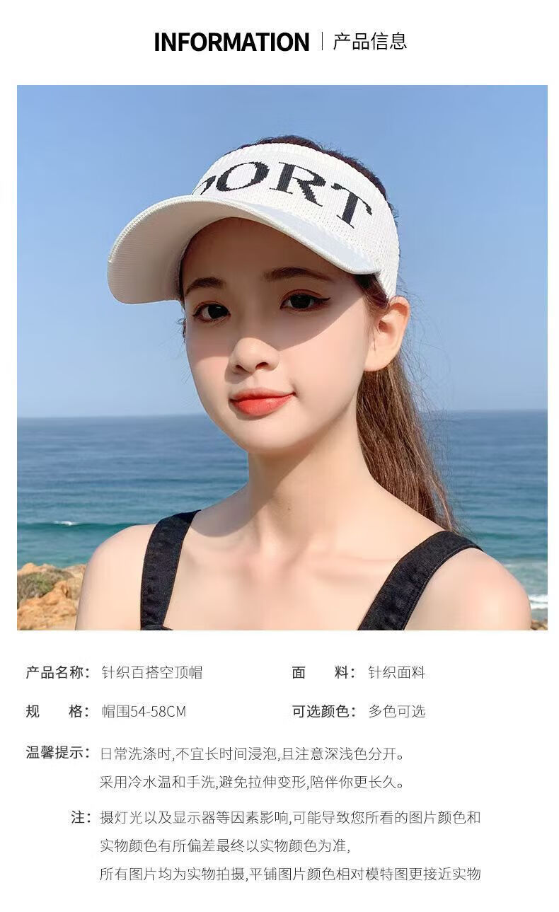 Chen's masterpiece summer hollow breathable knitted empty top hat telekinetic running sun visor outdoor travel portable sun hat peaked sport hat 1 white