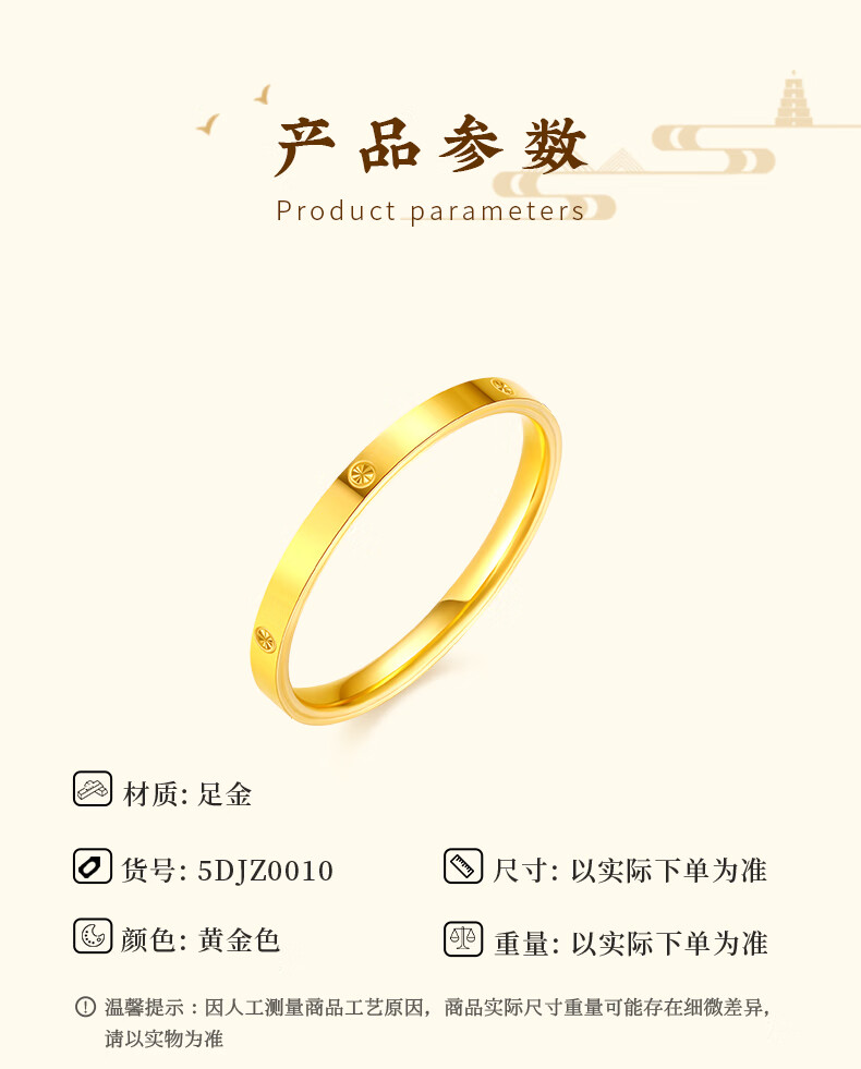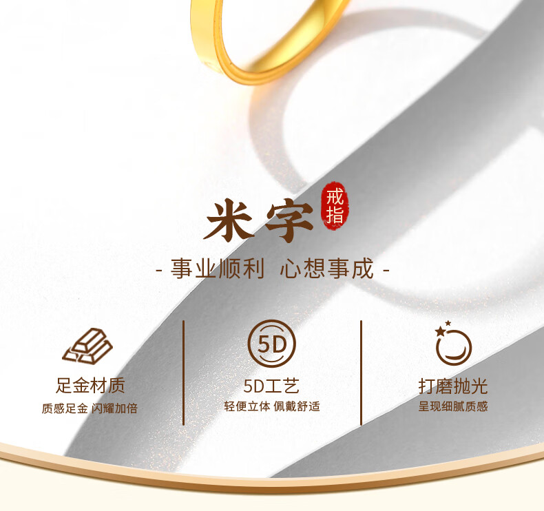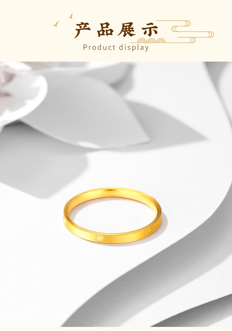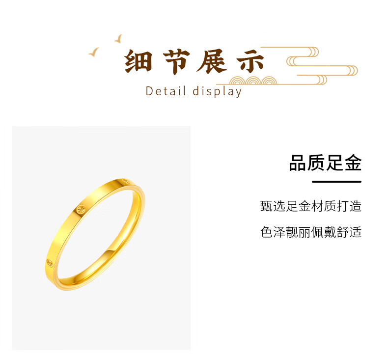 CHINA GOLD rice-shaped gold ring women's pure gold closed single ring ring birthday gift for girlfriend and wife gold weight about 1.1g* pure gold ring ring mouth 15#