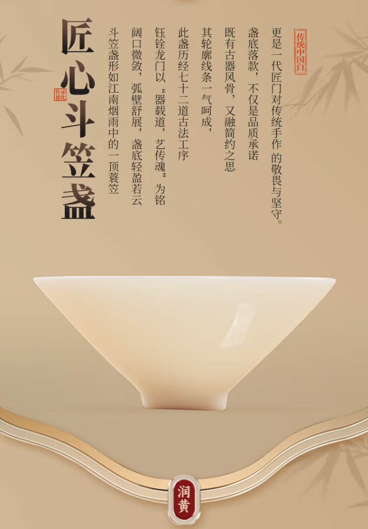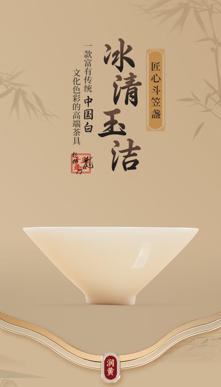 Yuquan Longmen Bingqing Yujie's ingenious bamboo hat and lamp Dehua traditional Chinese white porcelain pure handmade high-end tea cup gift box Bingqing Yujie's ingenious bamboo hat and lamp