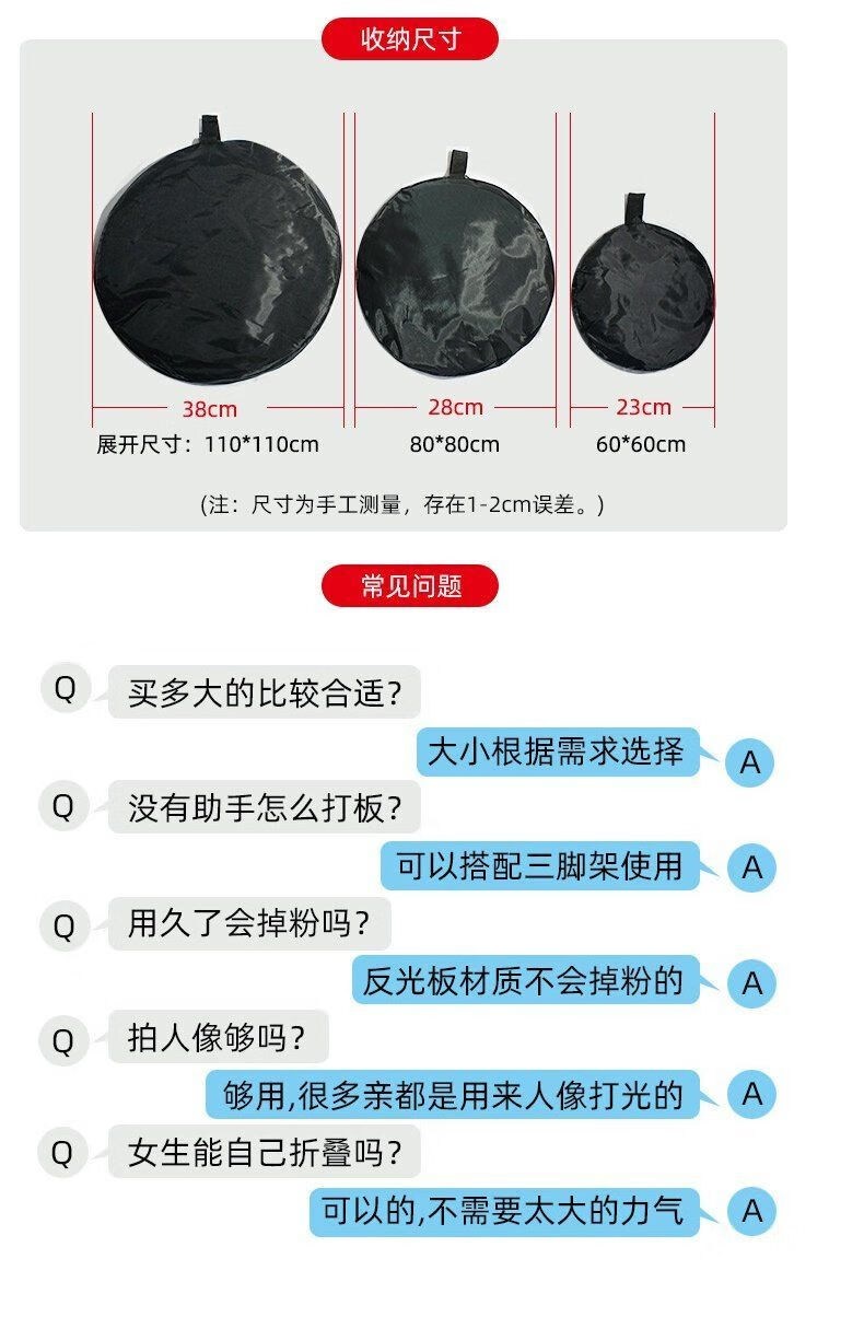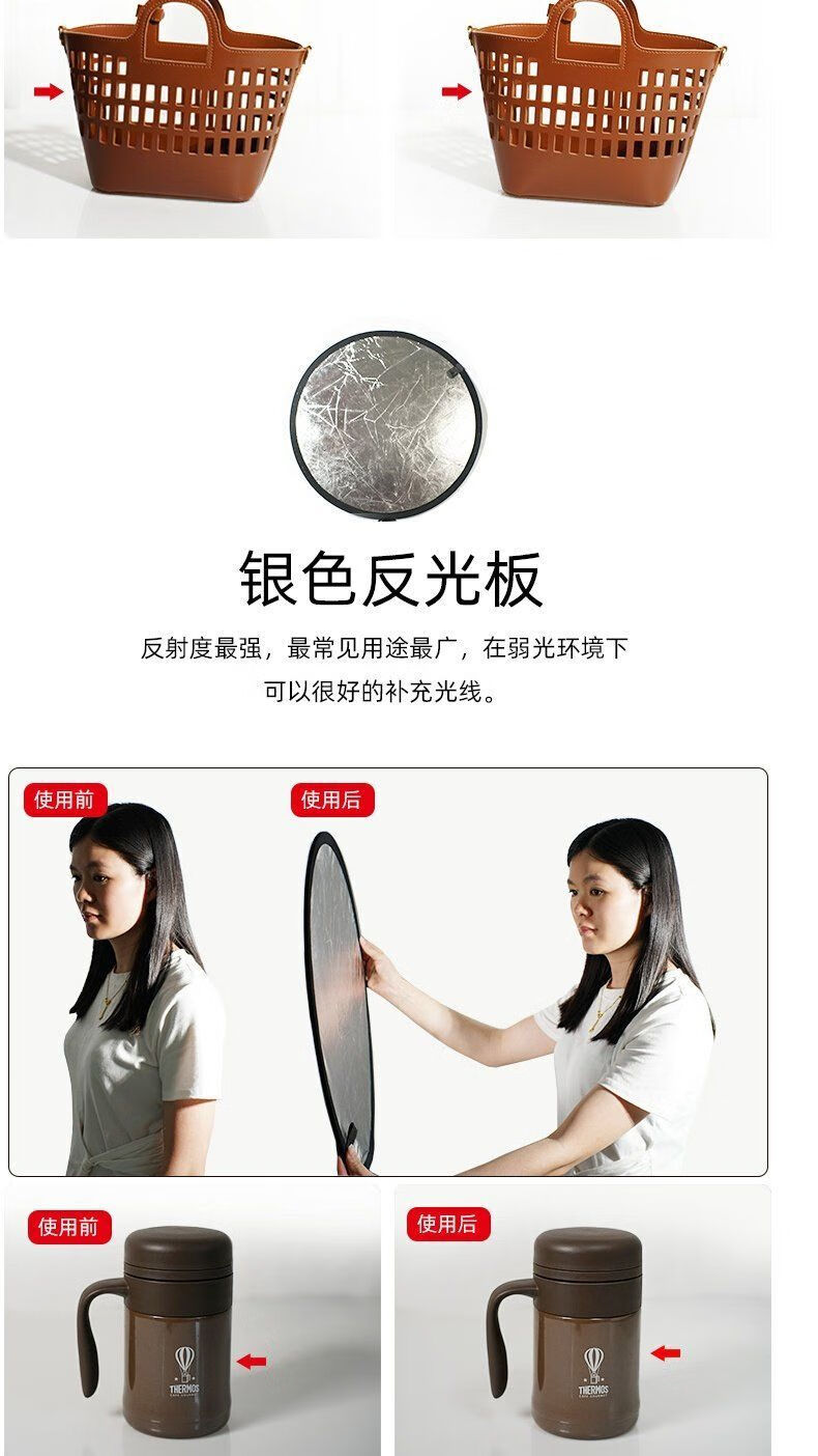 Professional photography, photography reflector, soft light photography, light blocking board, foldable lighting, portable portrait fill-in light, self-portraits, studio shooting, outdoor props 60cm - silver and white double-sided, free storage bag