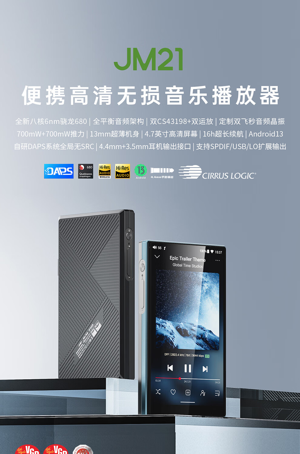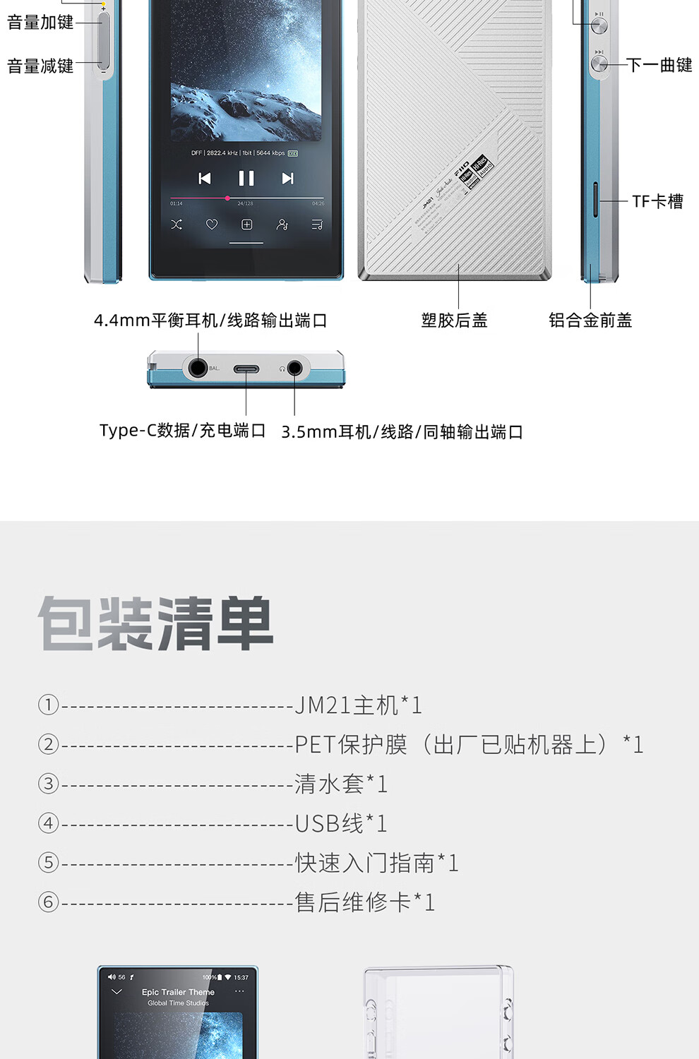 FiiO JM21 Portable HD Lossless Music Player JM21 Black (3G+32G)