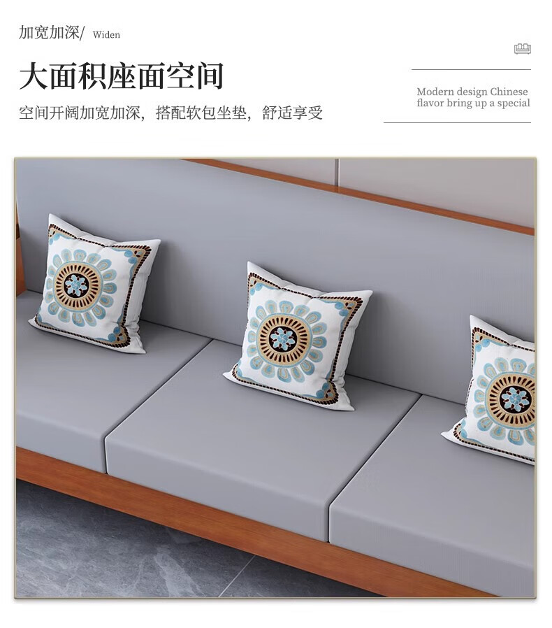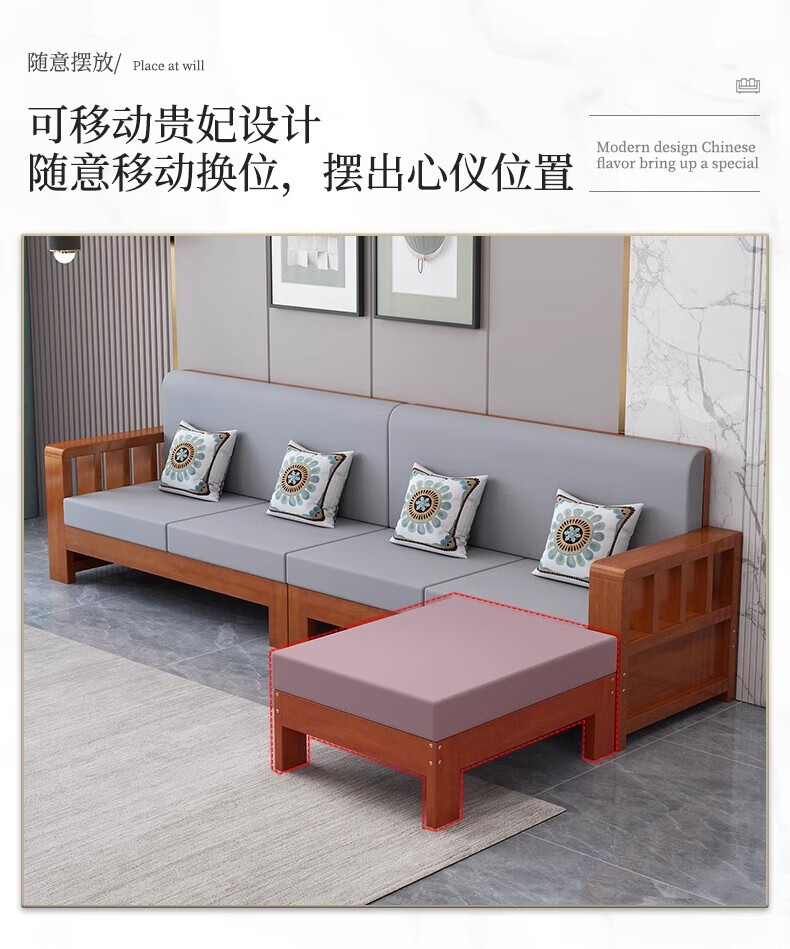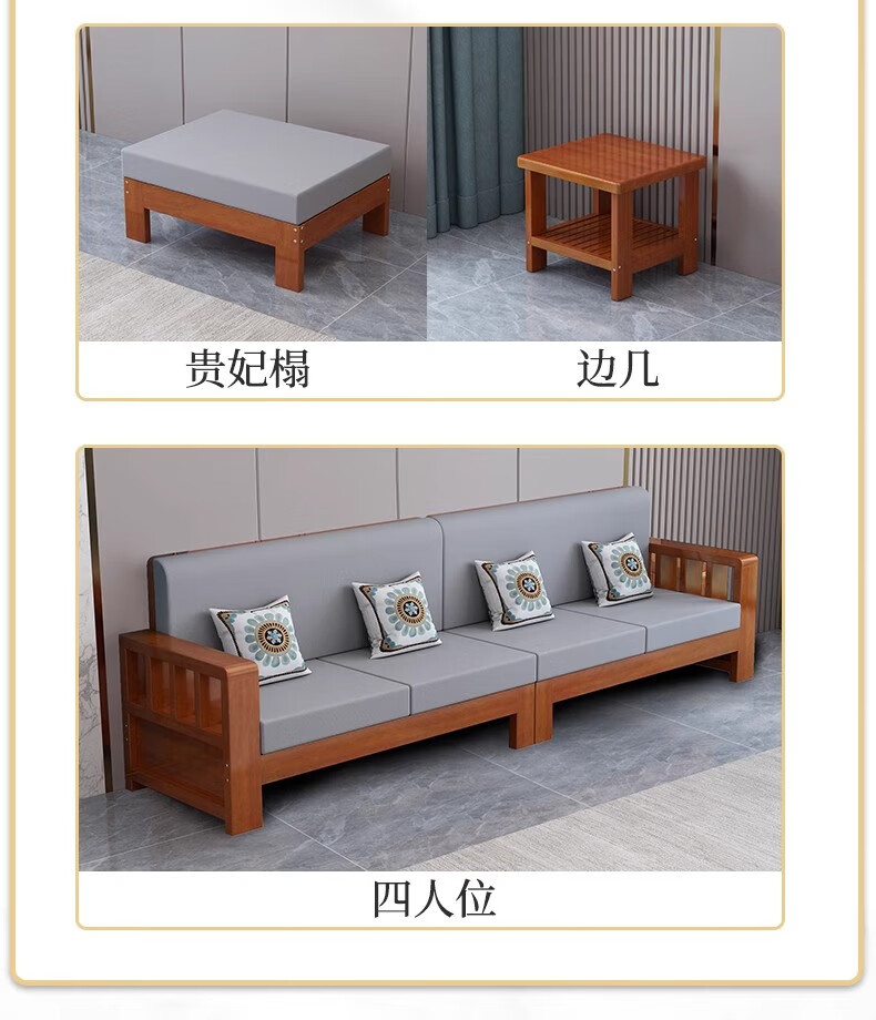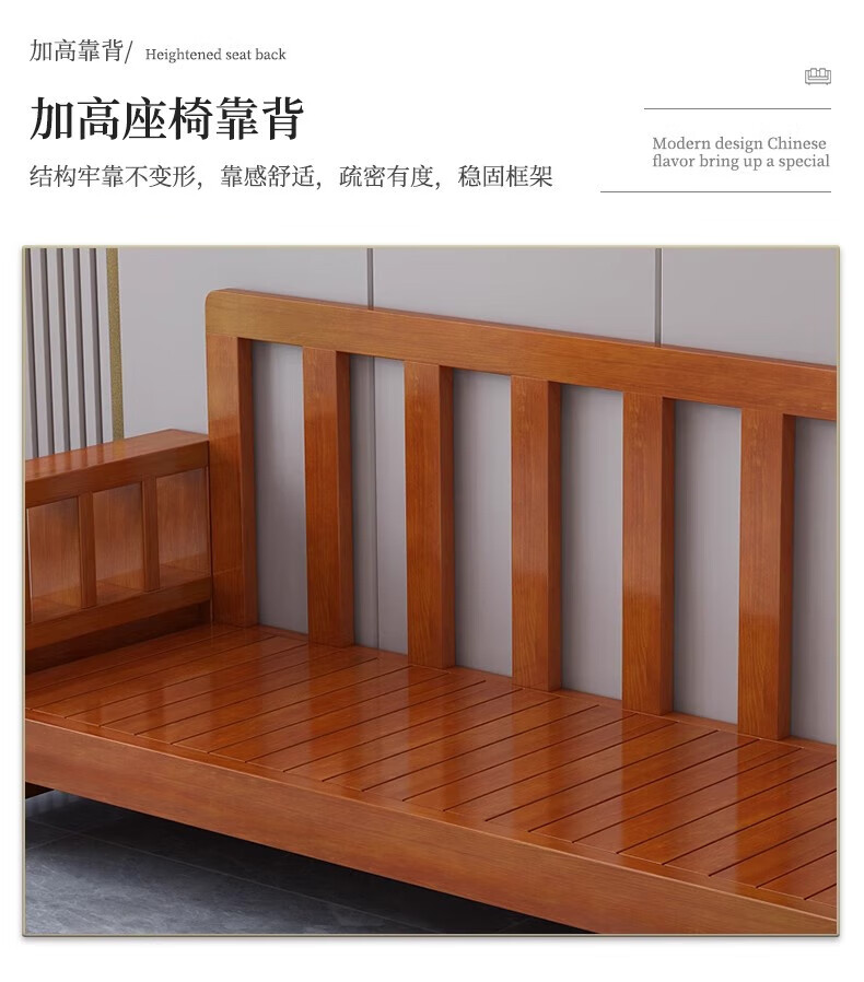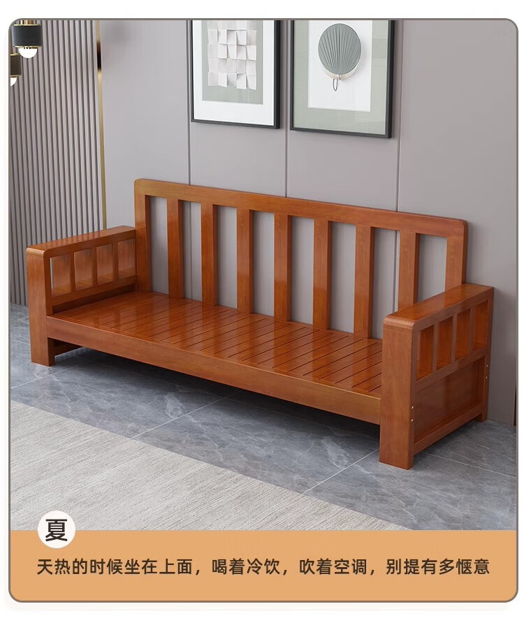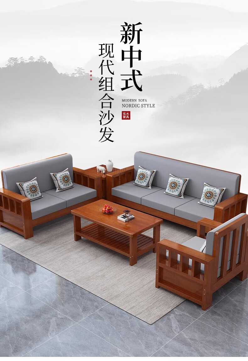Faith Laile solid wood new Chinese style sofa living room home combination small apartment simple modern new full set of winter and summer dual-use sofa four-seater teak color