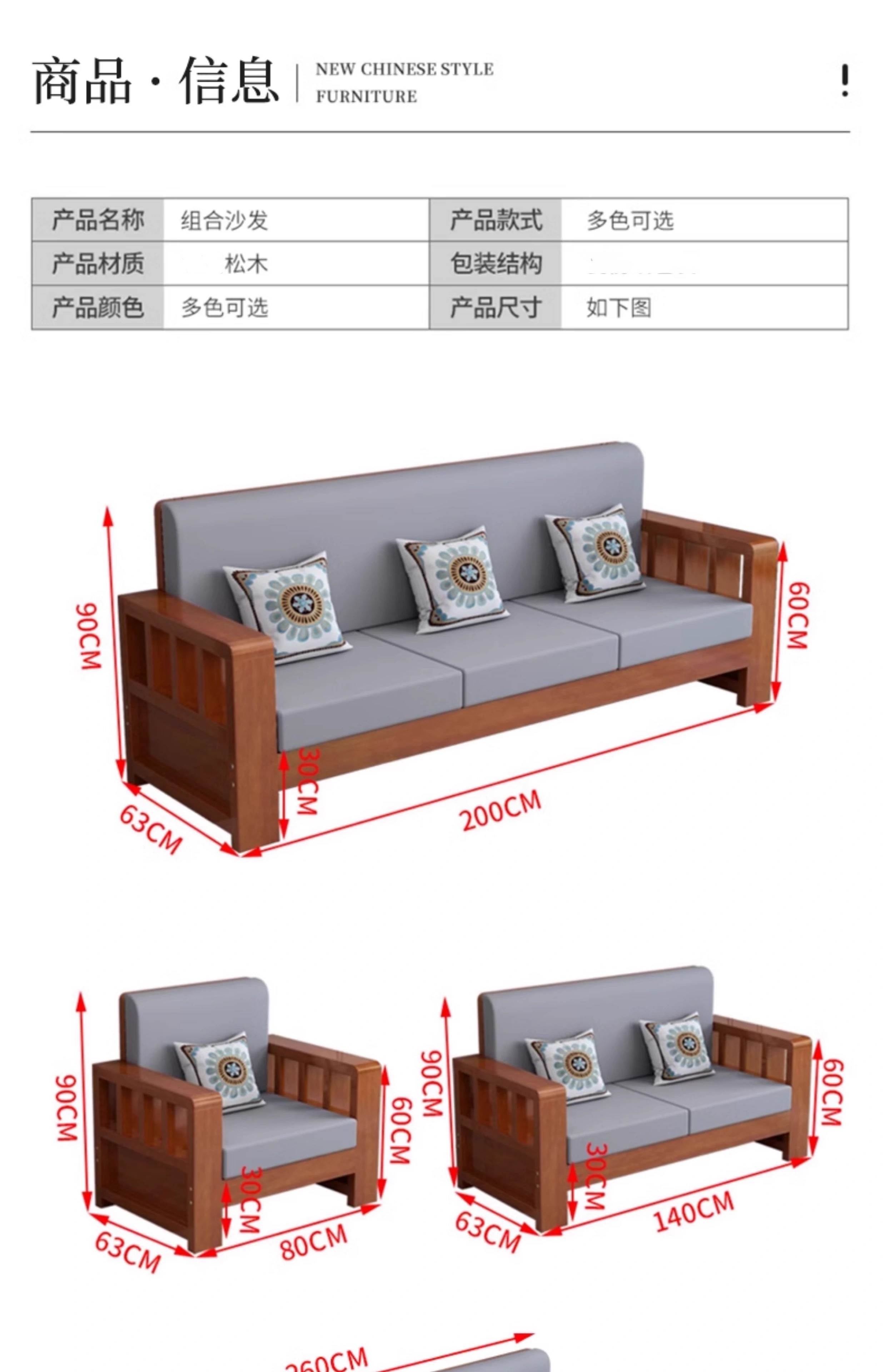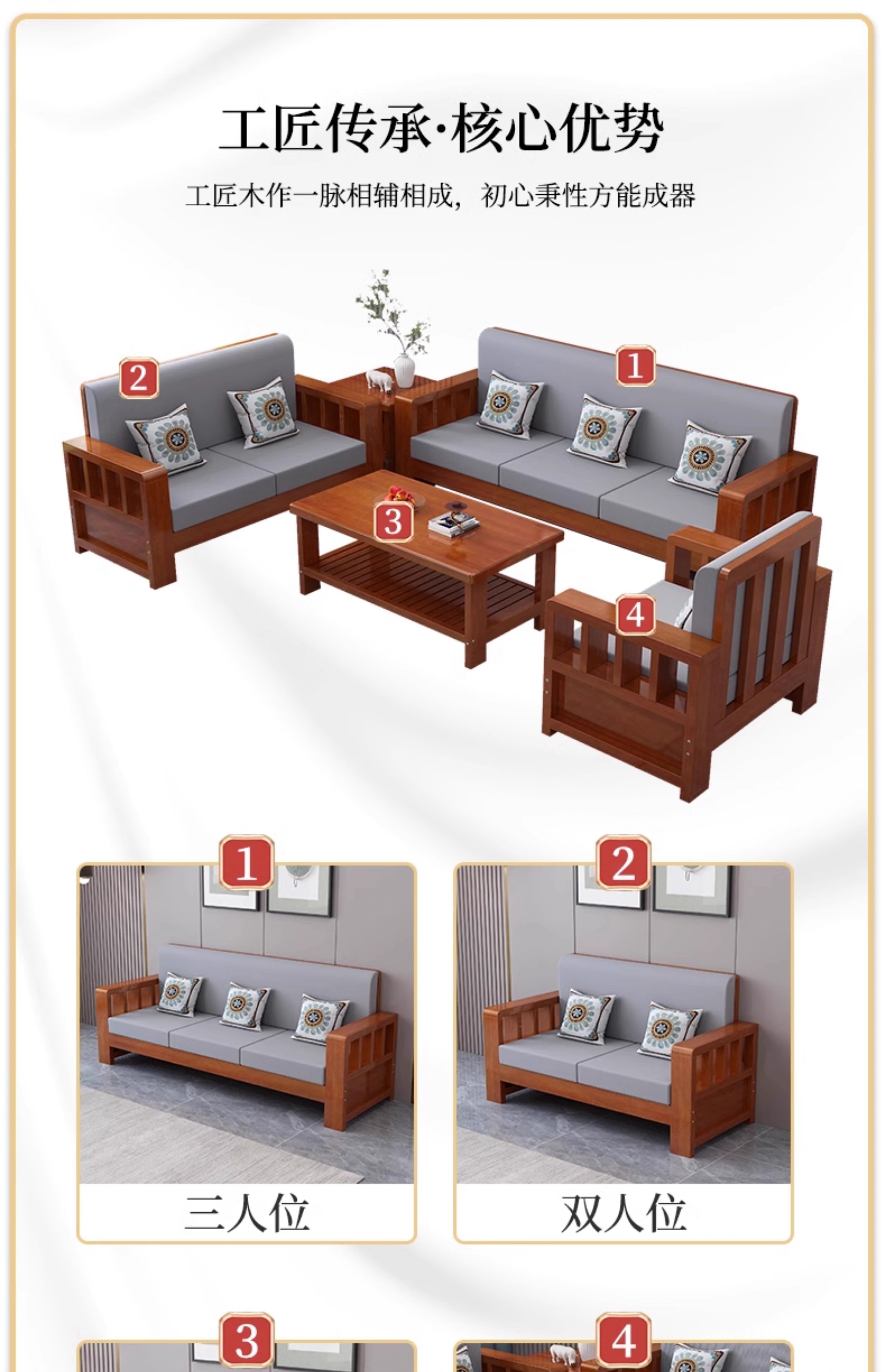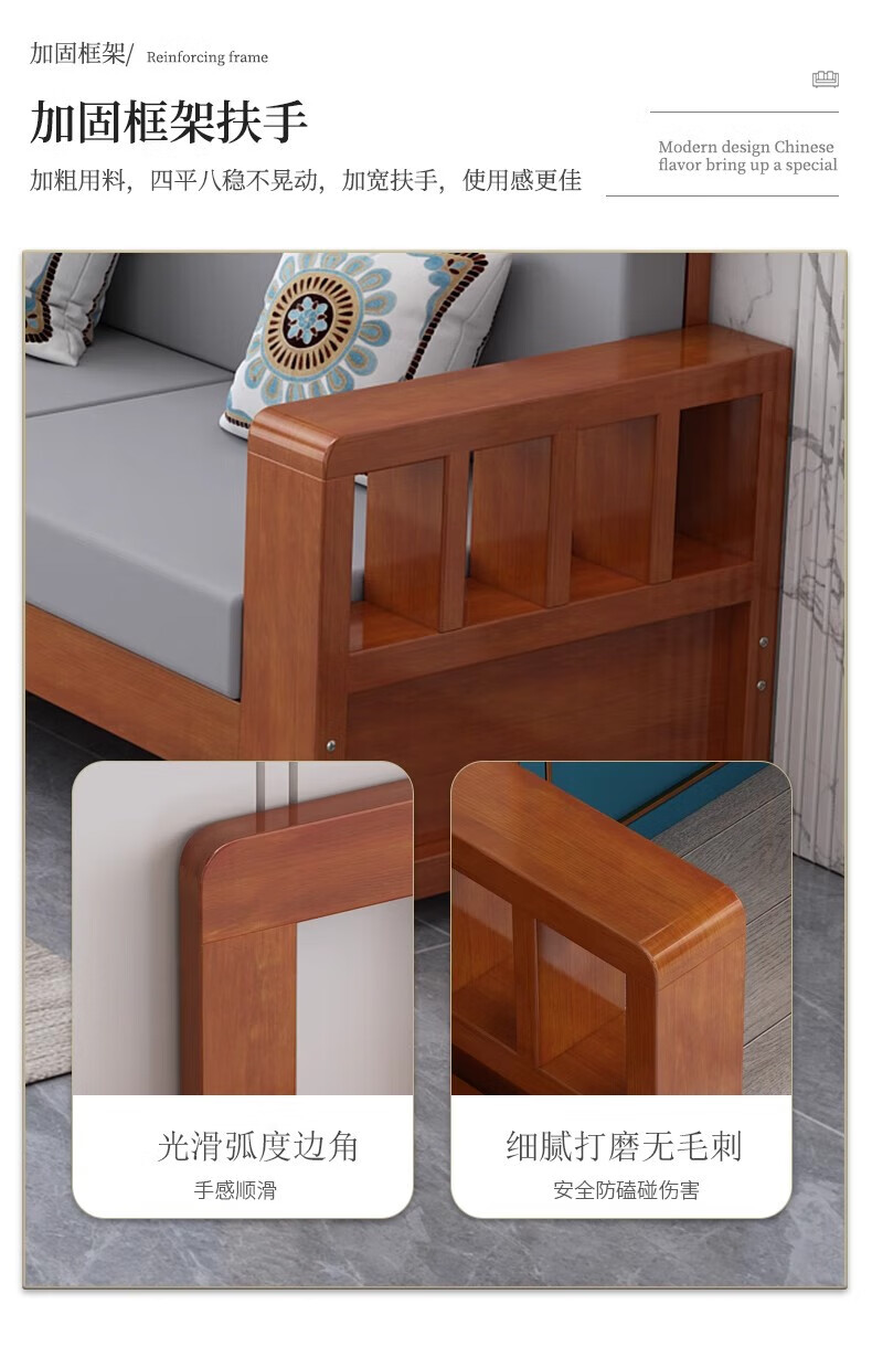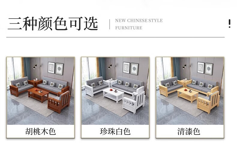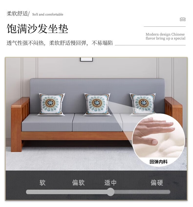 Faith Laile solid wood new Chinese style sofa living room home combination small apartment simple modern new full set of winter and summer dual-use sofa four-seater teak color