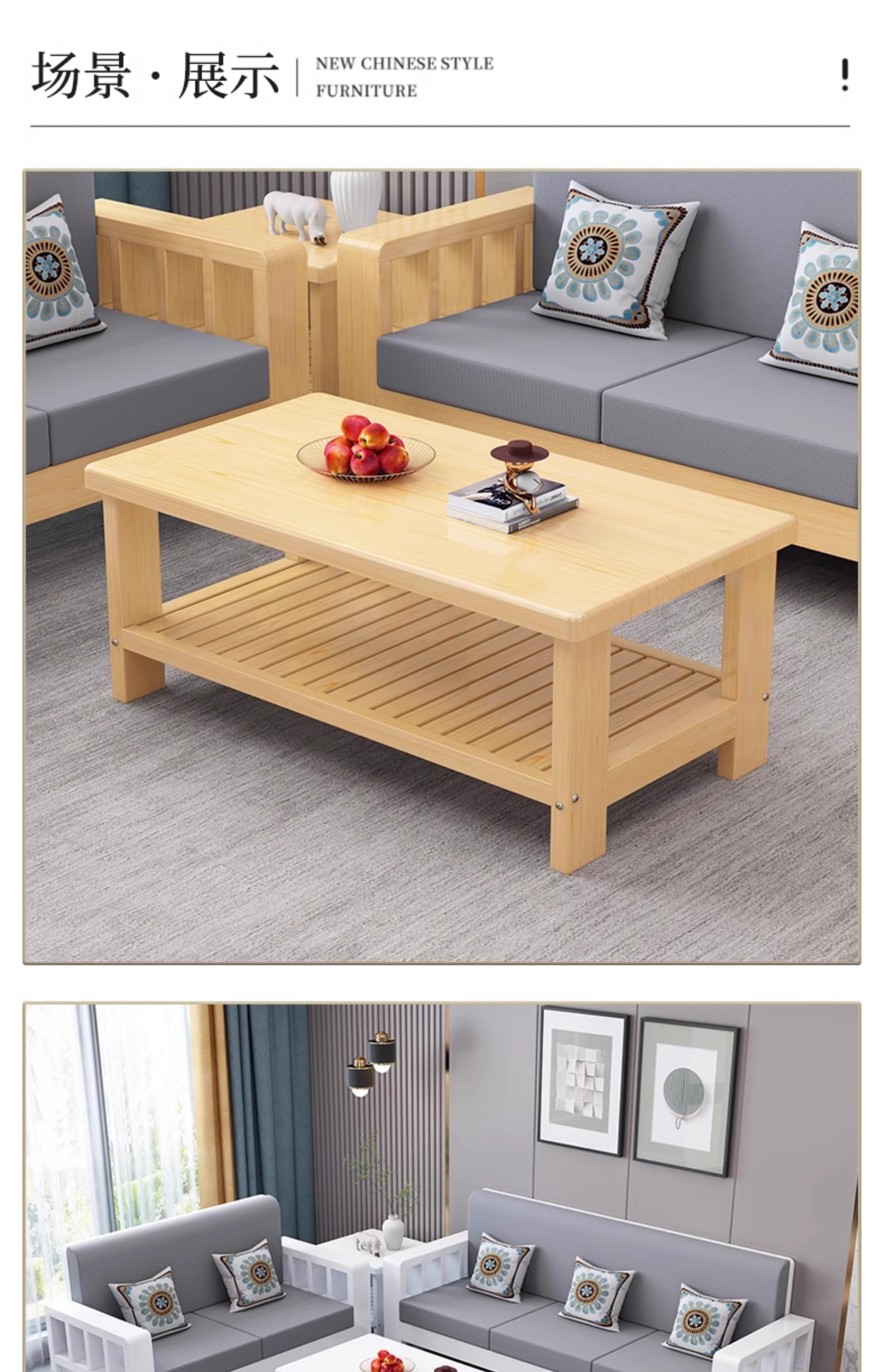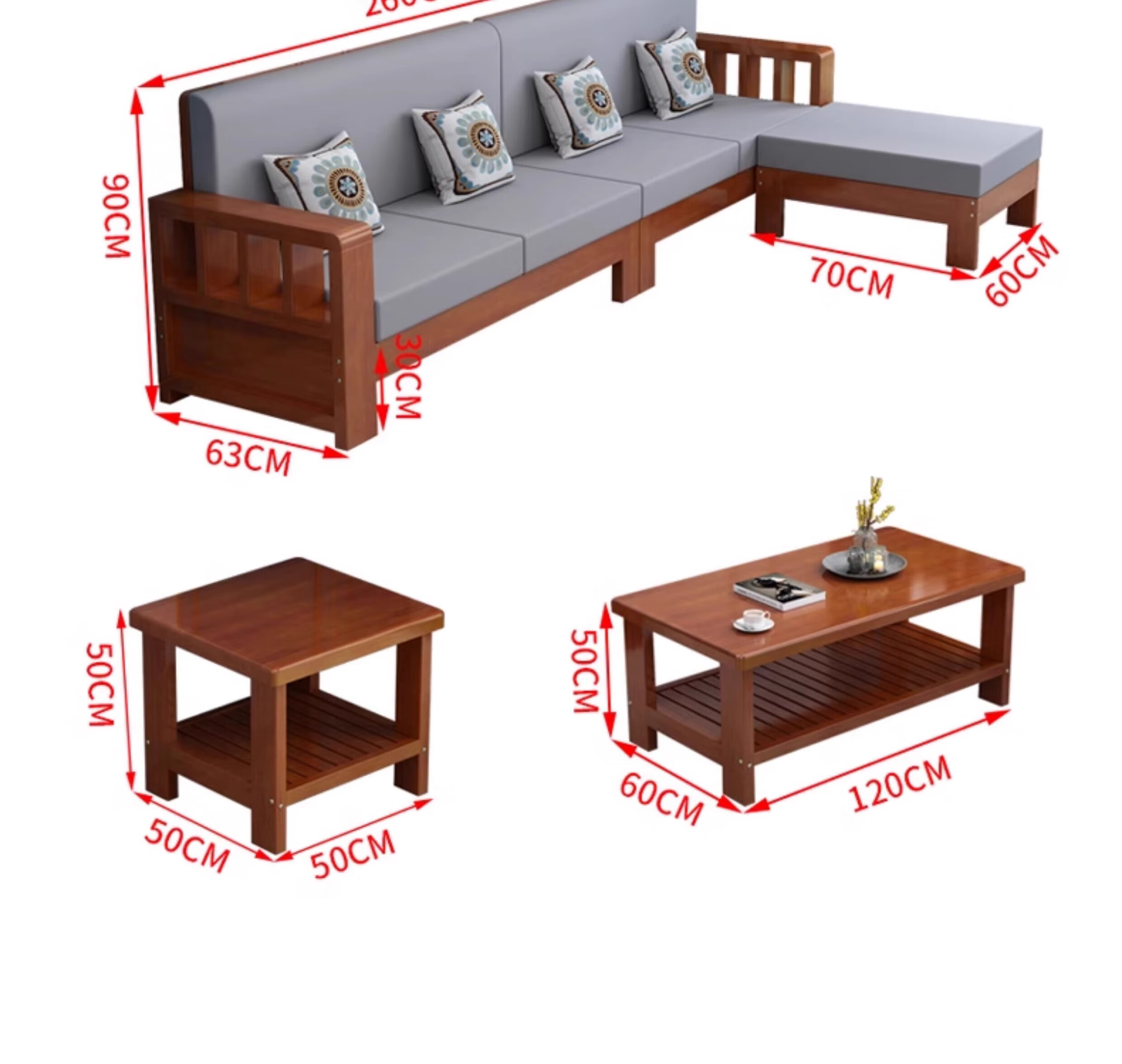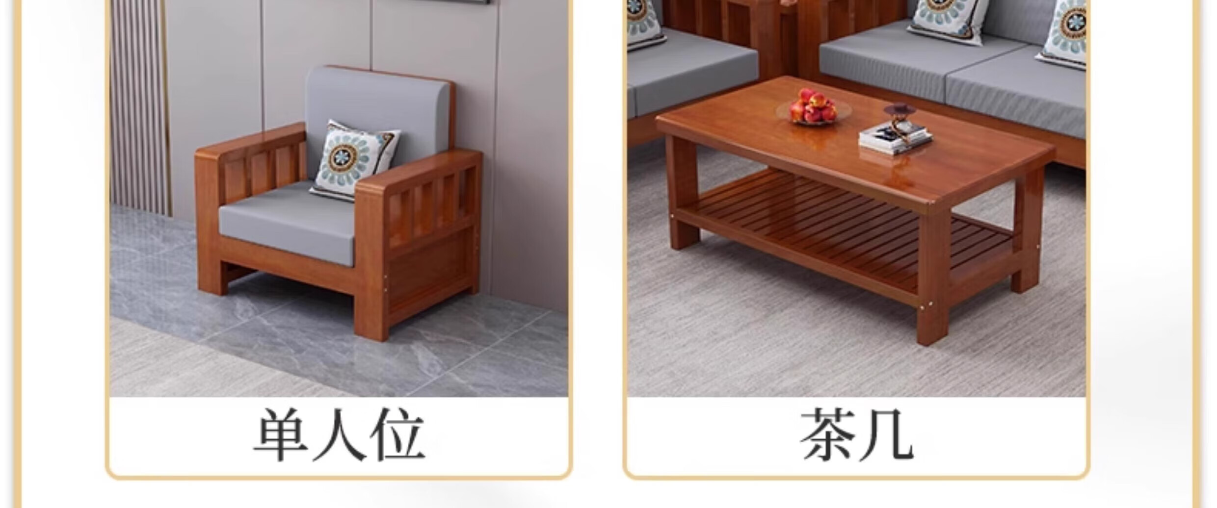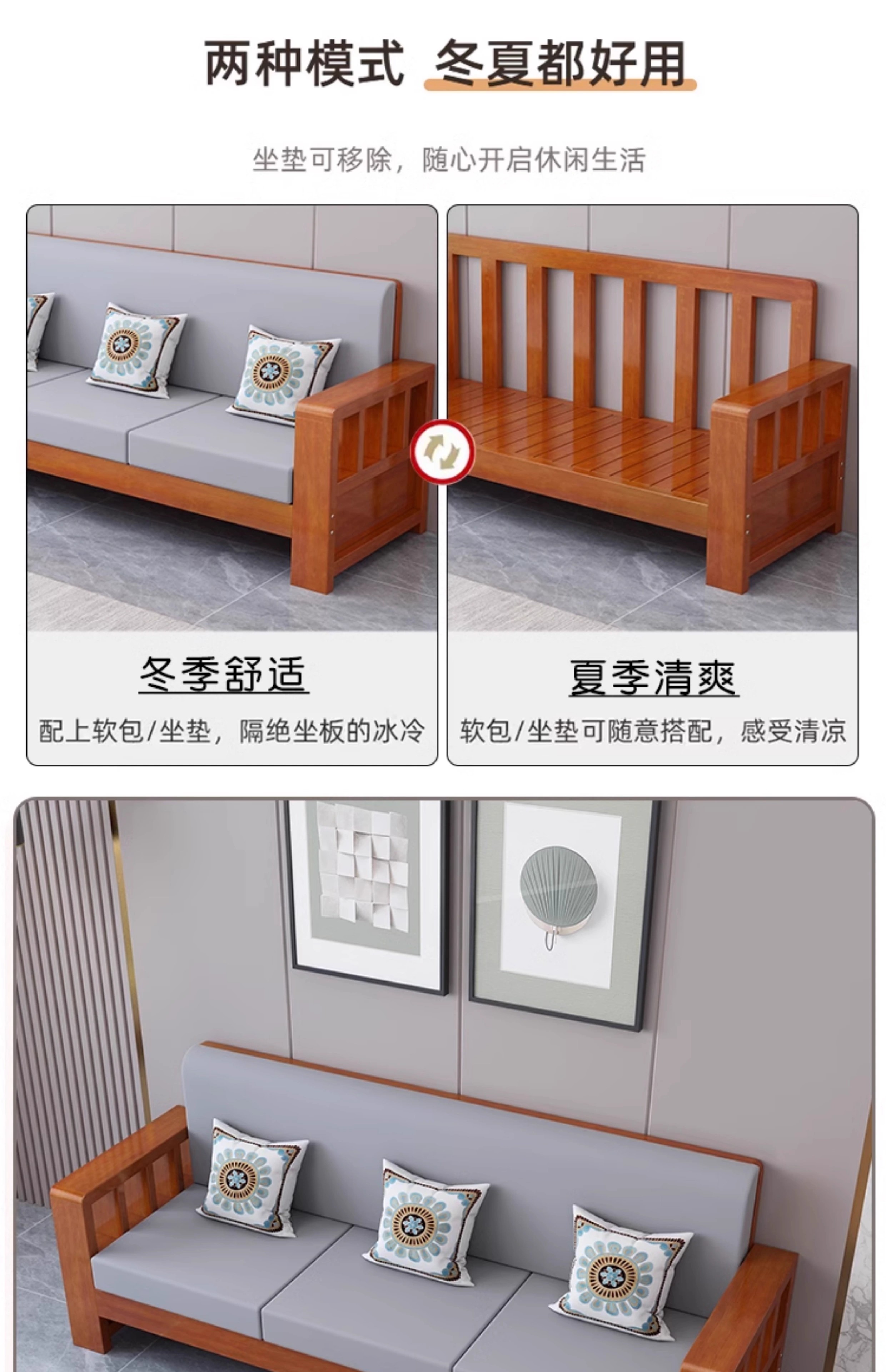 Faith Laile solid wood new Chinese style sofa living room home combination small apartment simple modern new full set of winter and summer dual-use sofa four-seater teak color