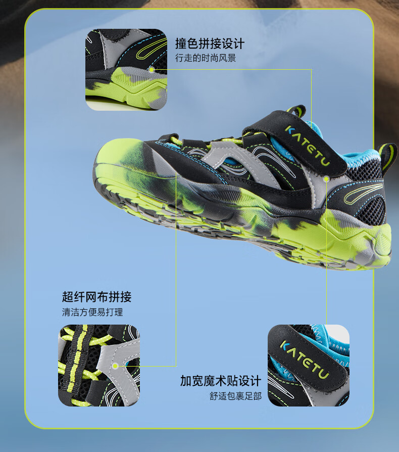 Carter Rabbit Outdoor Children's Sports Shoes 2025 Summer New Mosquito Repellent Shoes Non-Slip Wear-Resistant Hiking Shoes Baby Sandals Black Gray Green 24