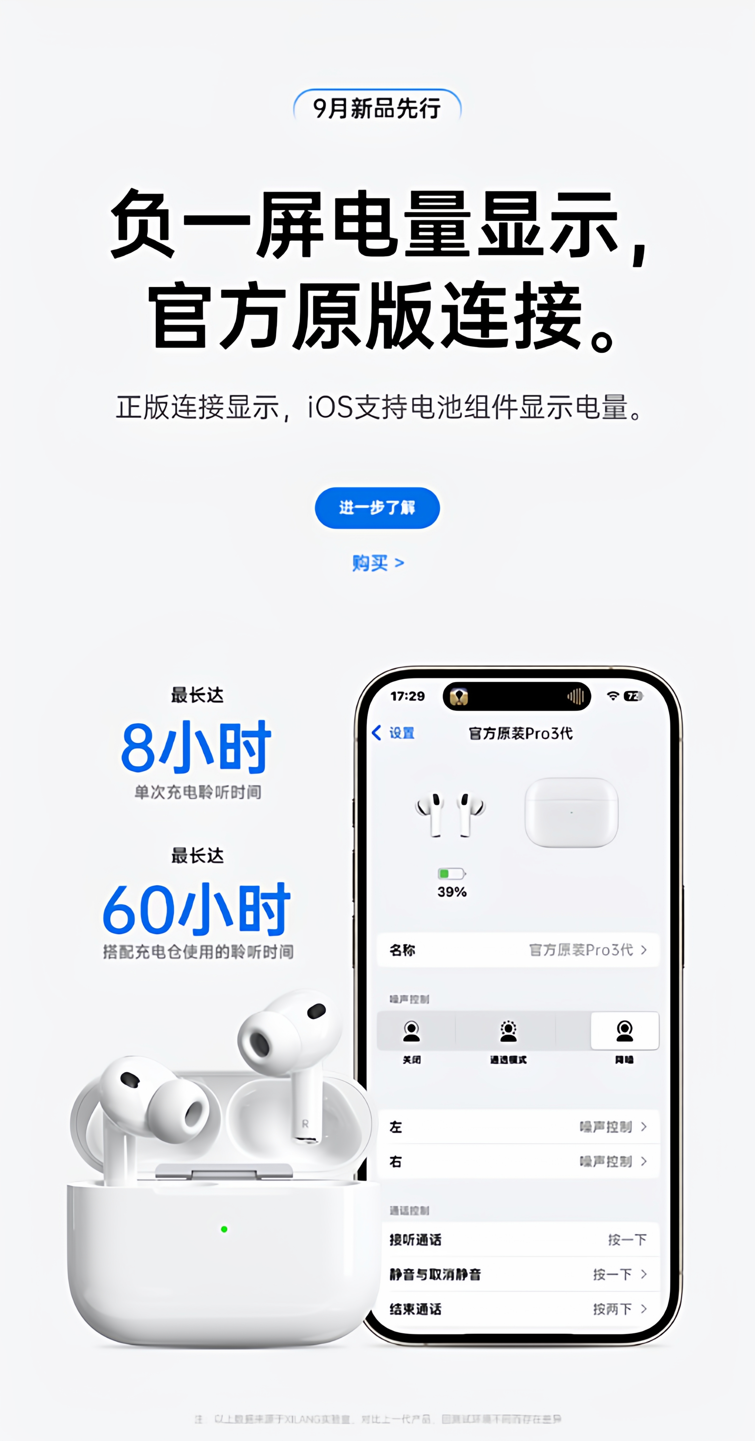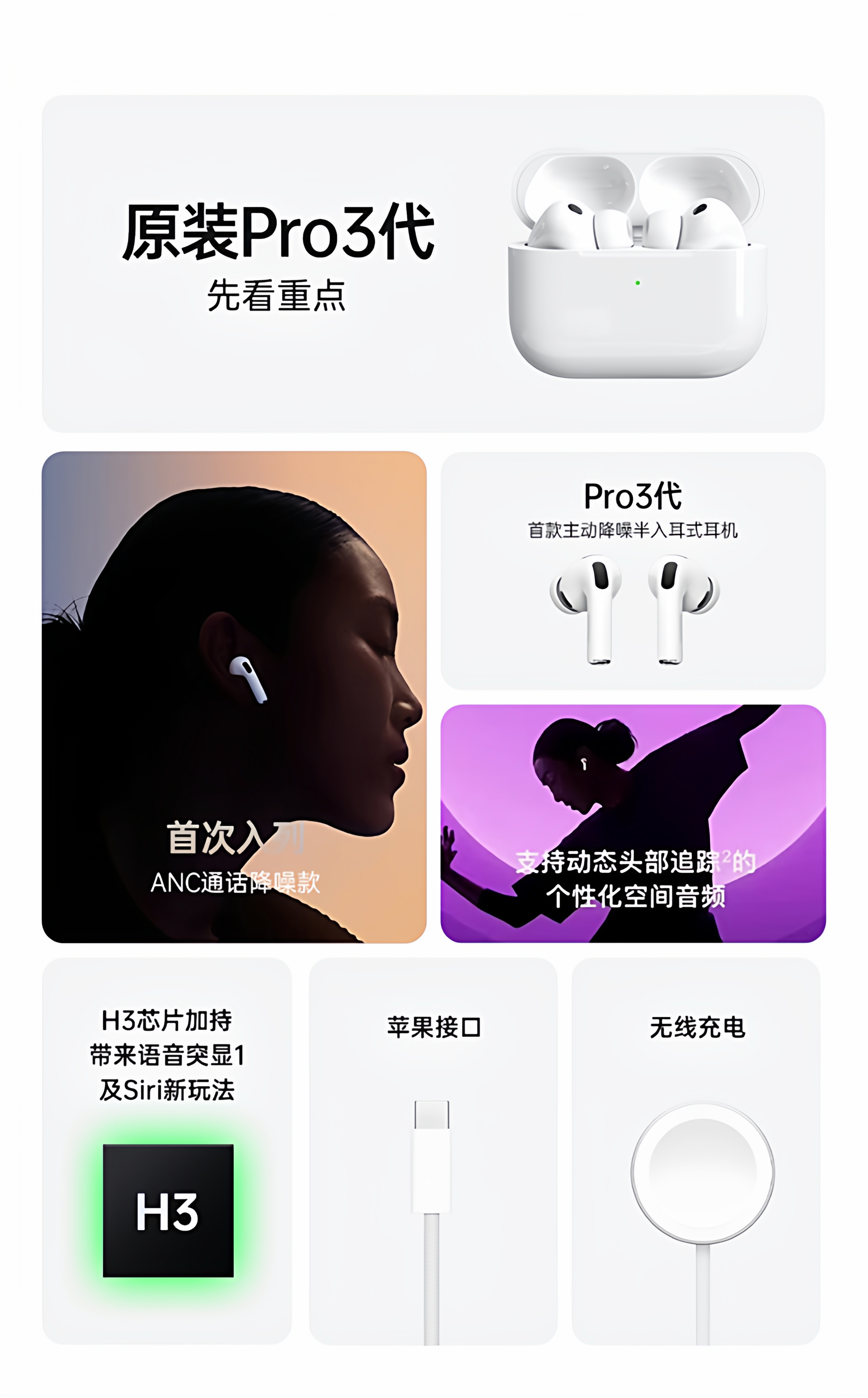 Huaqiangbei's new official release | Pro3 top version Bluetooth headset compatible with Apple wireless active noise reduction iPhone 17/16/15/14/13 in-ear AirPods Pro3 active noise reduction version full-featured pro3 smart island pop-up + spatial audio + heart rate monitoring