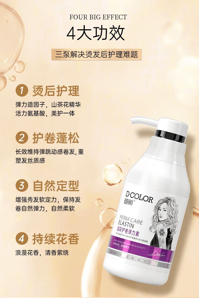 Decolor Decolor elastin for curly hair, moisturizing, soft-shaping, high-elasticity perm, dyeing, repair, care, shredded hair, fluffy spring perm, suitable for small coils of wool, curly wet and shiny elastin