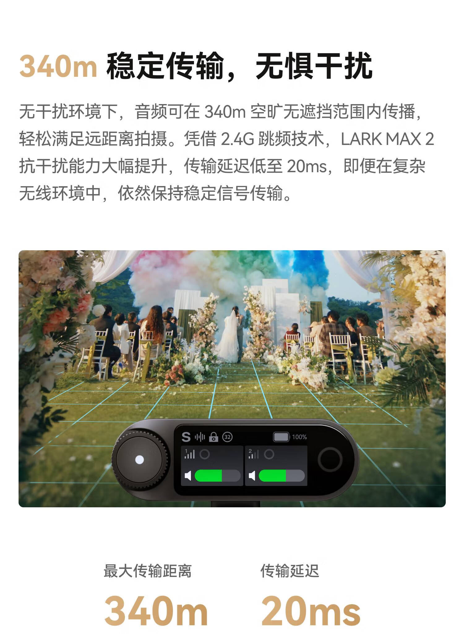 Mammoth LARK MAX 2 wireless monitoring Mammoth microphone one-to-two wireless lavalier microphone SLR mobile phone live broadcast vlog video outdoor interview radio Mammoth new product all-round version one-to-two (with monitoring headphones)