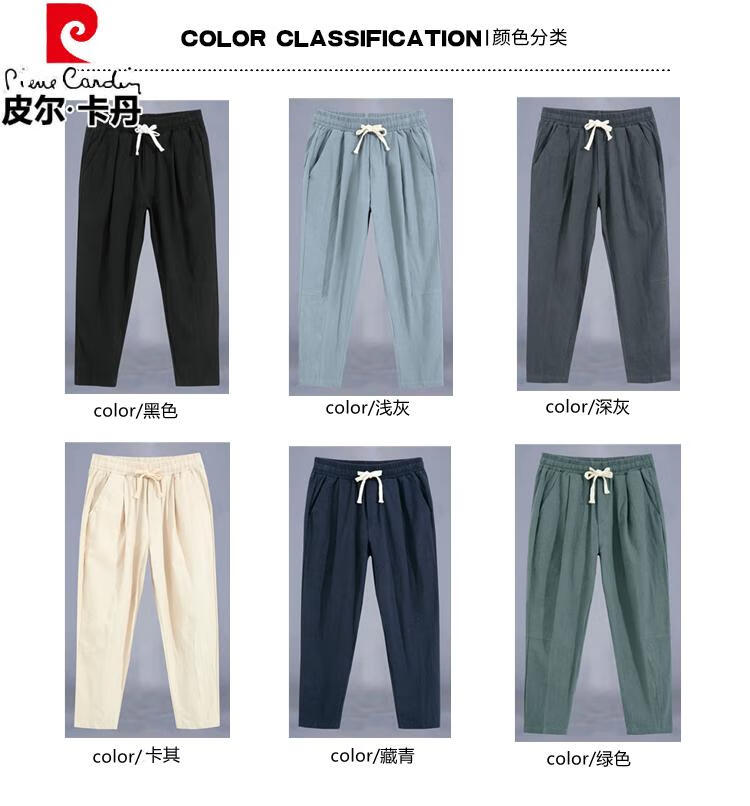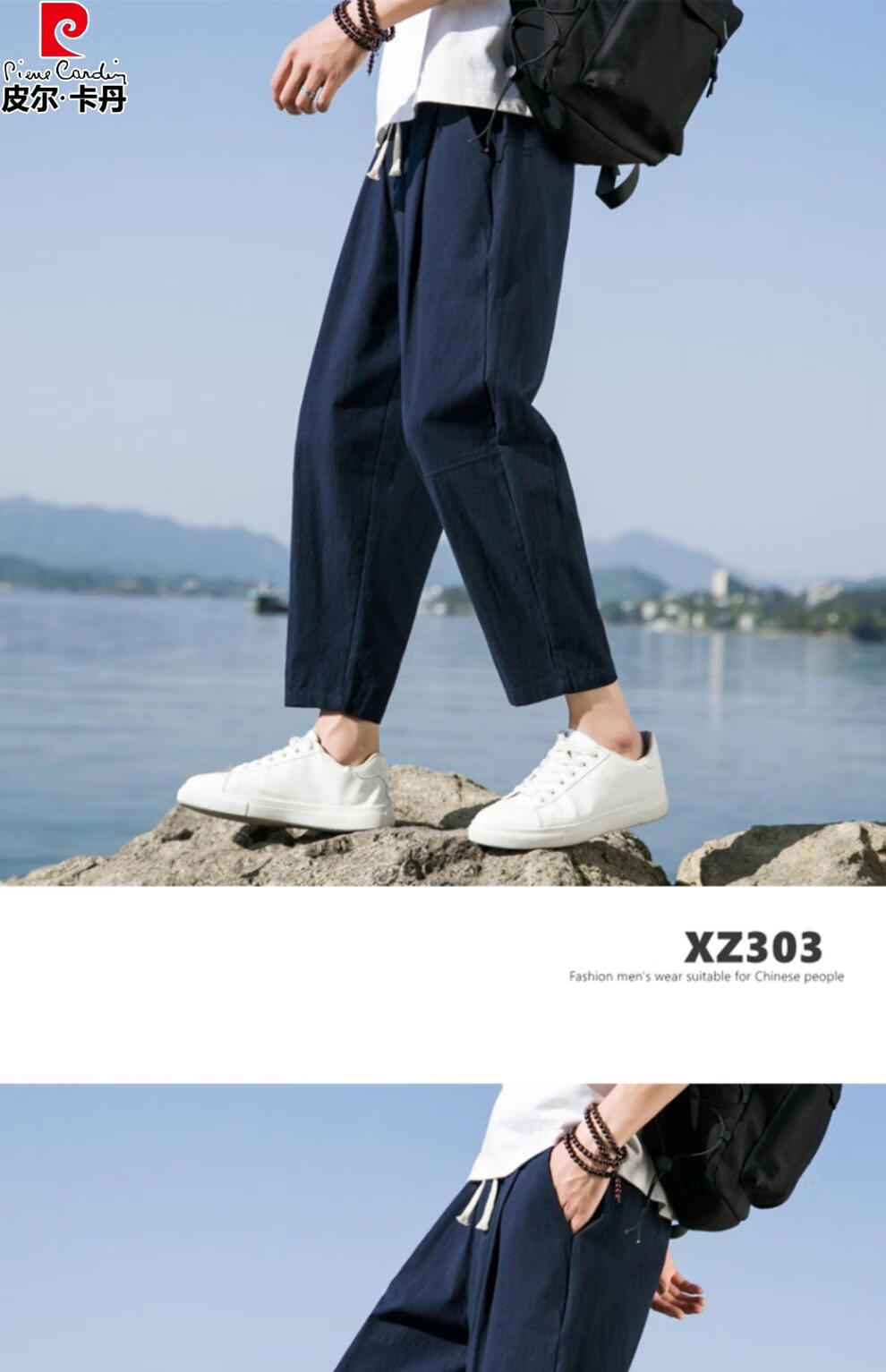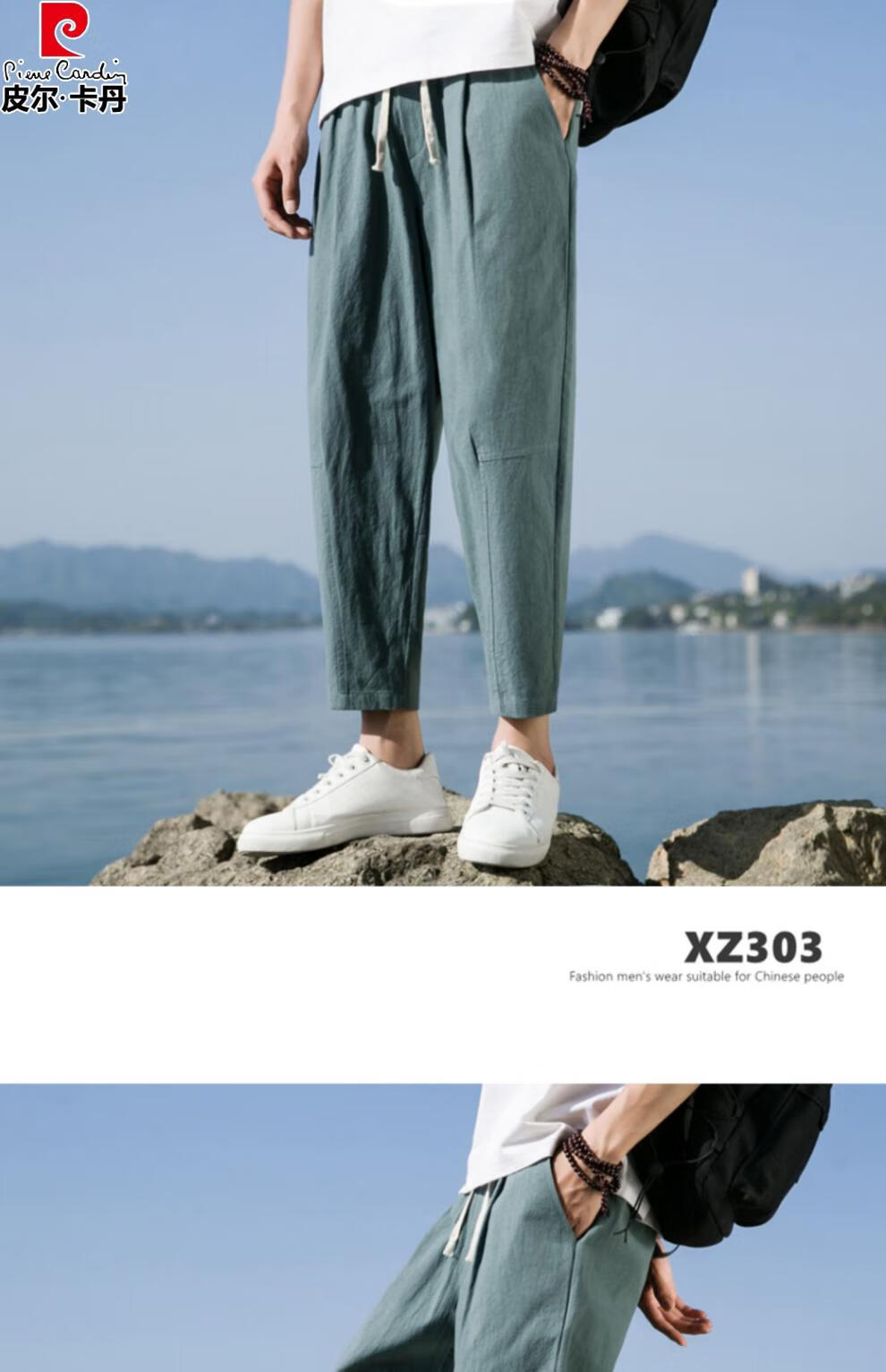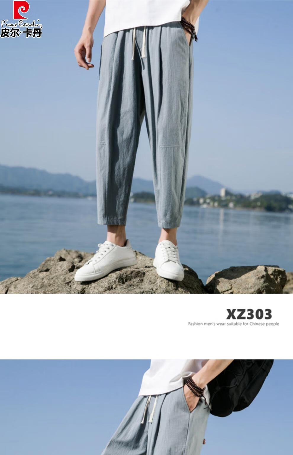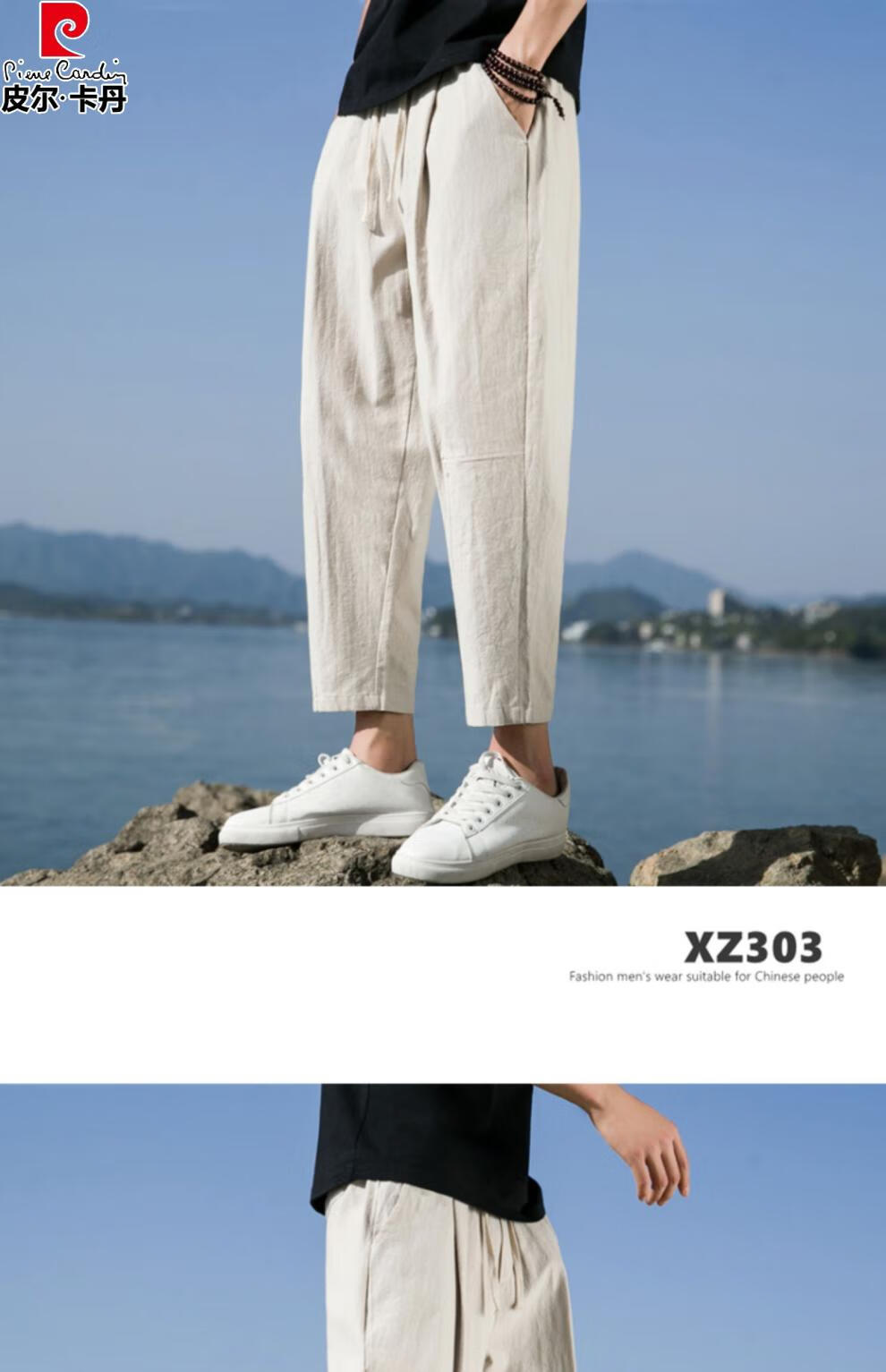 Pierre Cardin linen nine-point pants men's autumn thick cotton and linen pants men's casual pants straight loose sports pants nine-point pants trendy Khaki 3XL 151-169Jin Jin is equal to 0.5 kg
