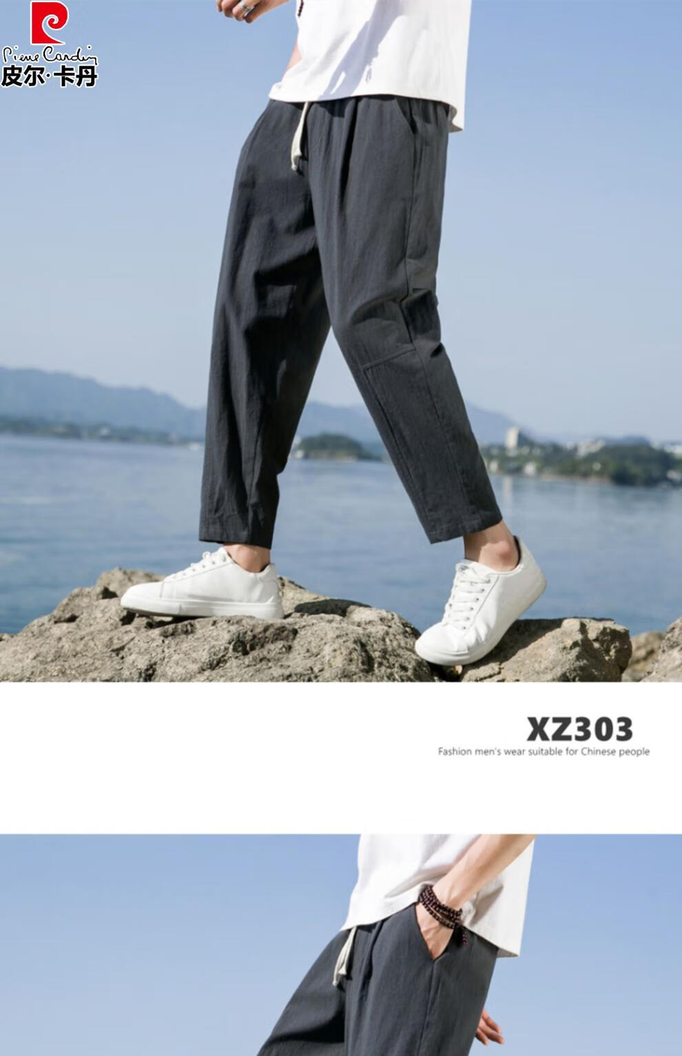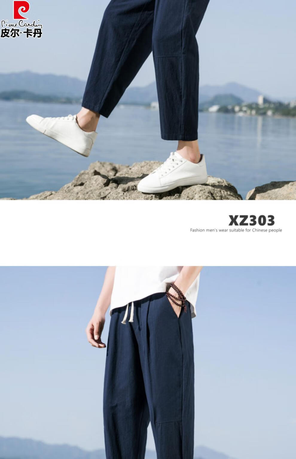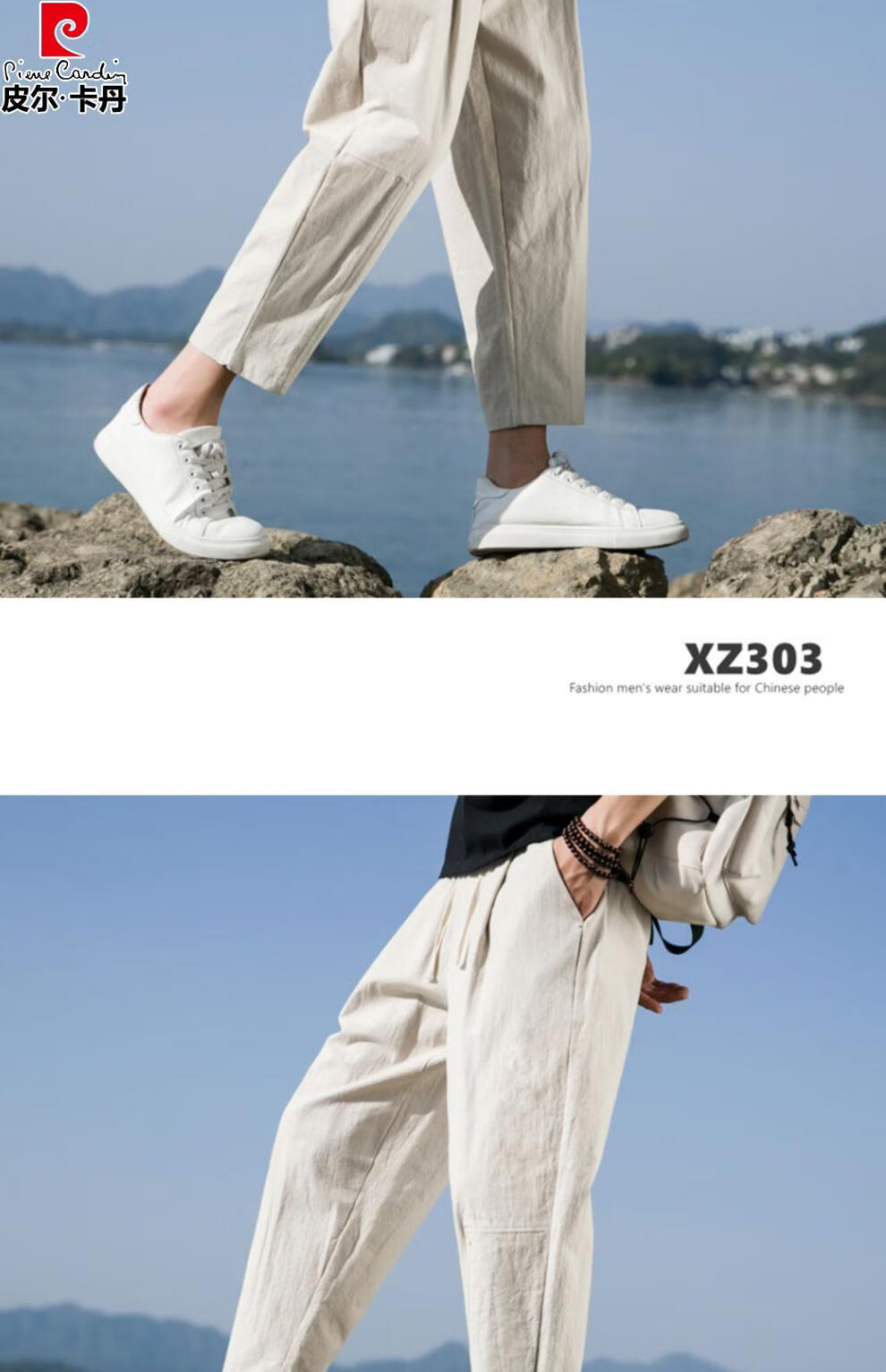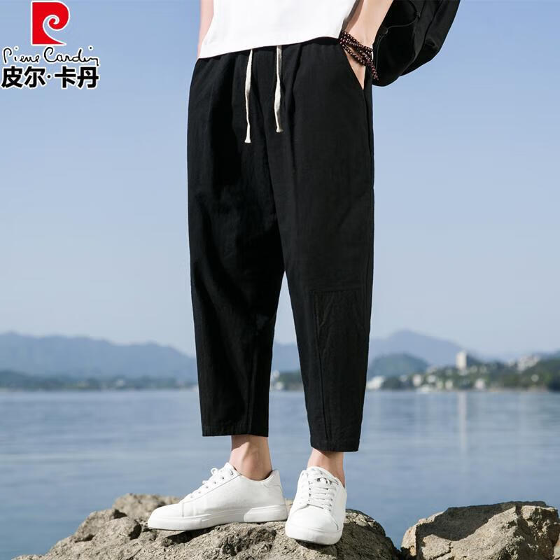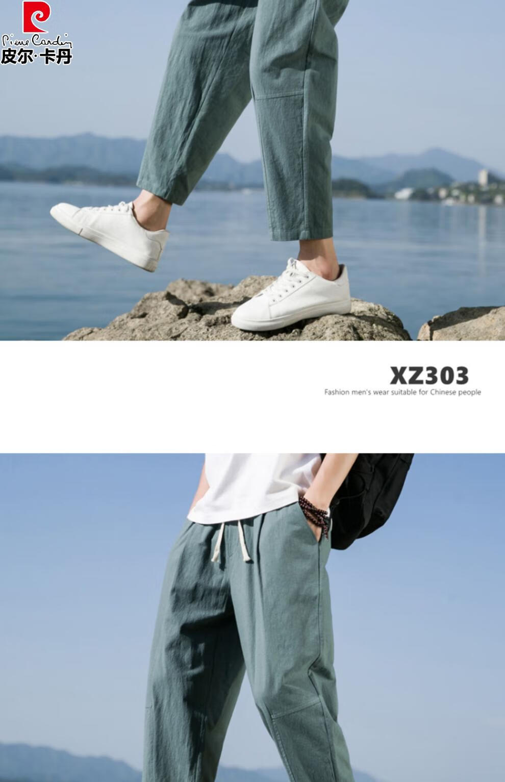 Pierre Cardin linen nine-point pants men's autumn thick cotton and linen pants men's casual pants straight loose sports pants nine-point pants trendy Khaki 3XL 151-169Jin Jin is equal to 0.5 kg