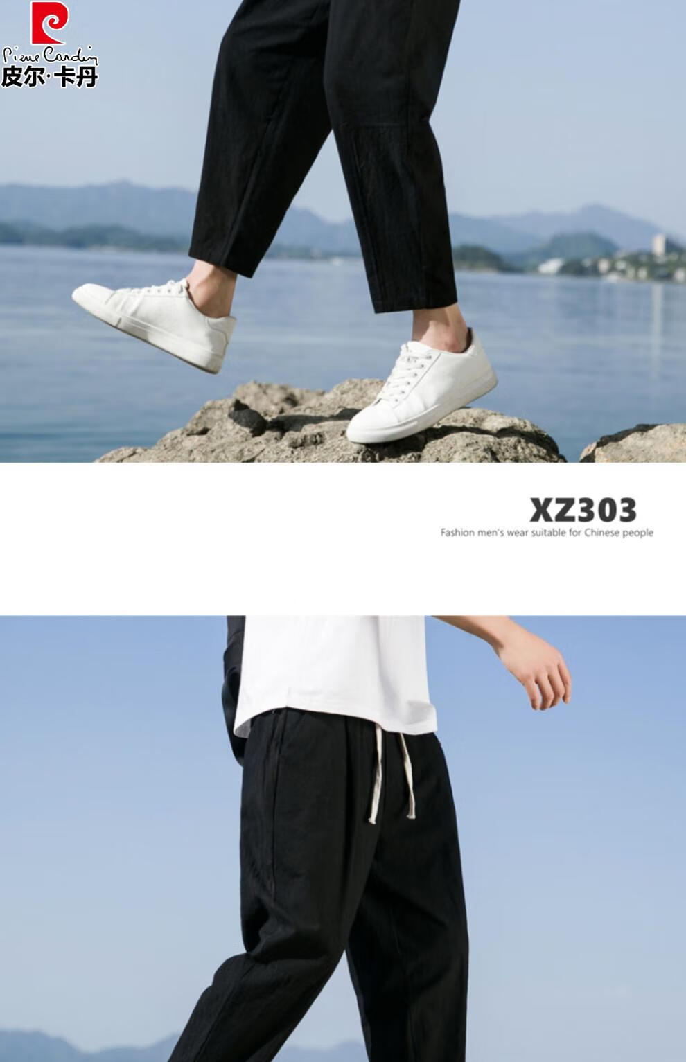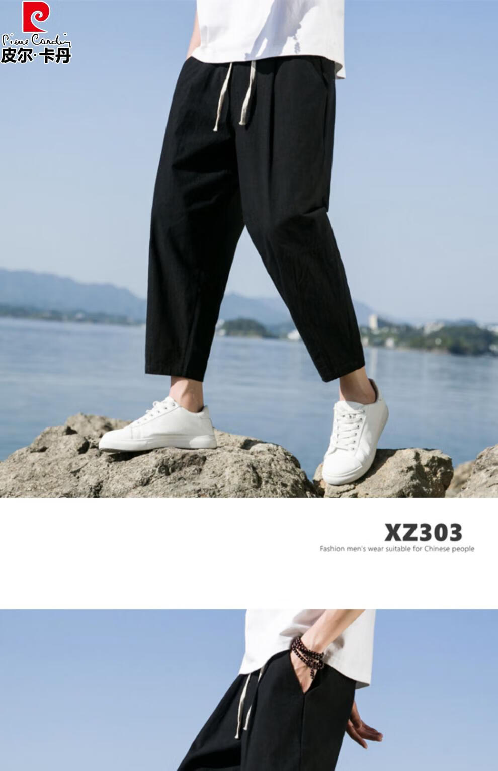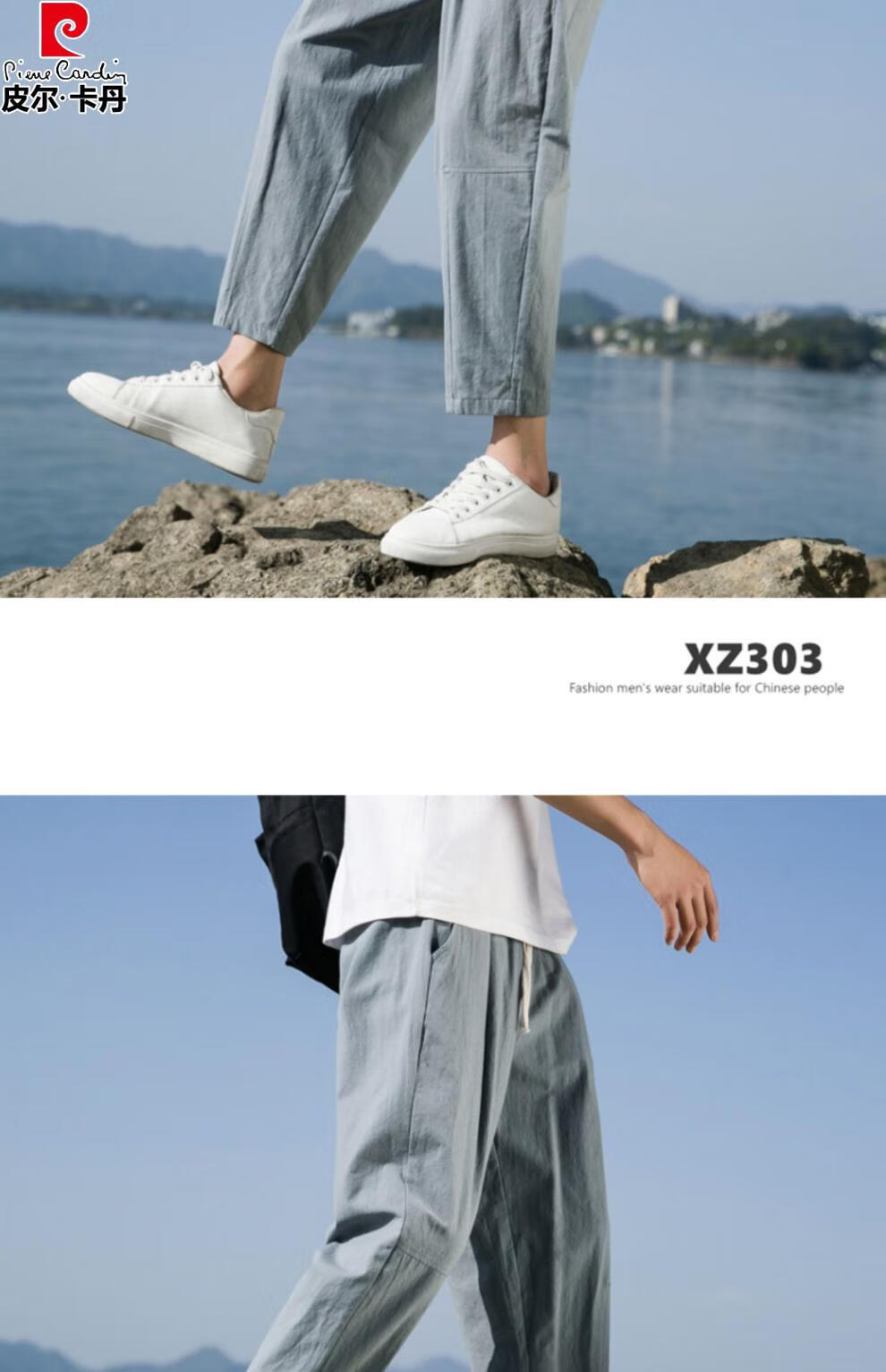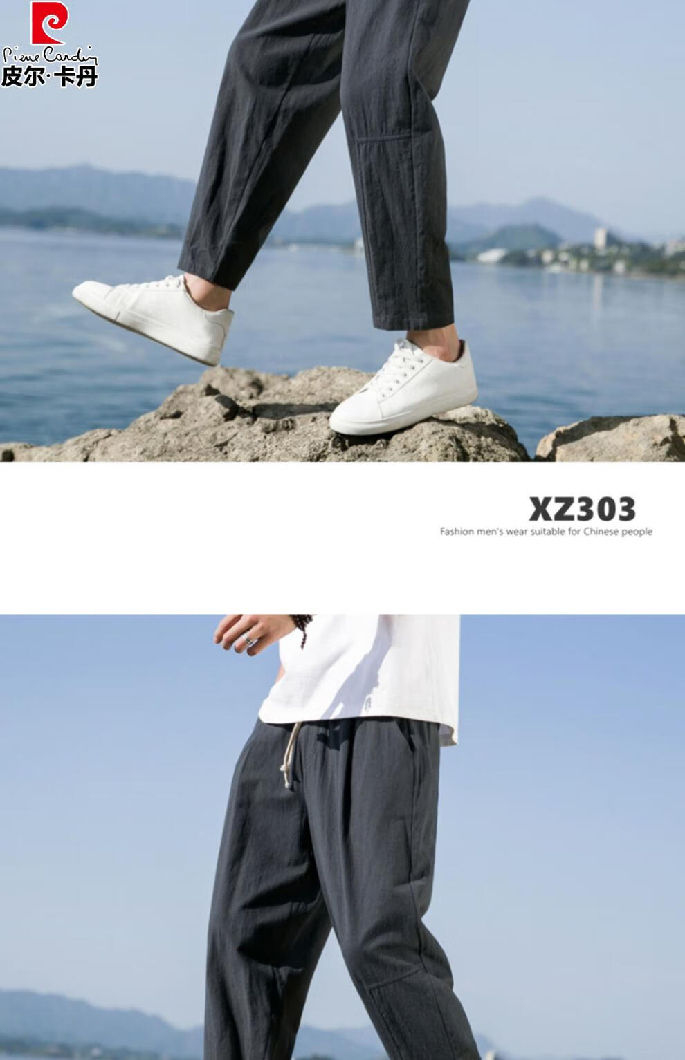 Pierre Cardin linen nine-point pants men's autumn thick cotton and linen pants men's casual pants straight loose sports pants nine-point pants trendy Khaki 3XL 151-169Jin Jin is equal to 0.5 kg